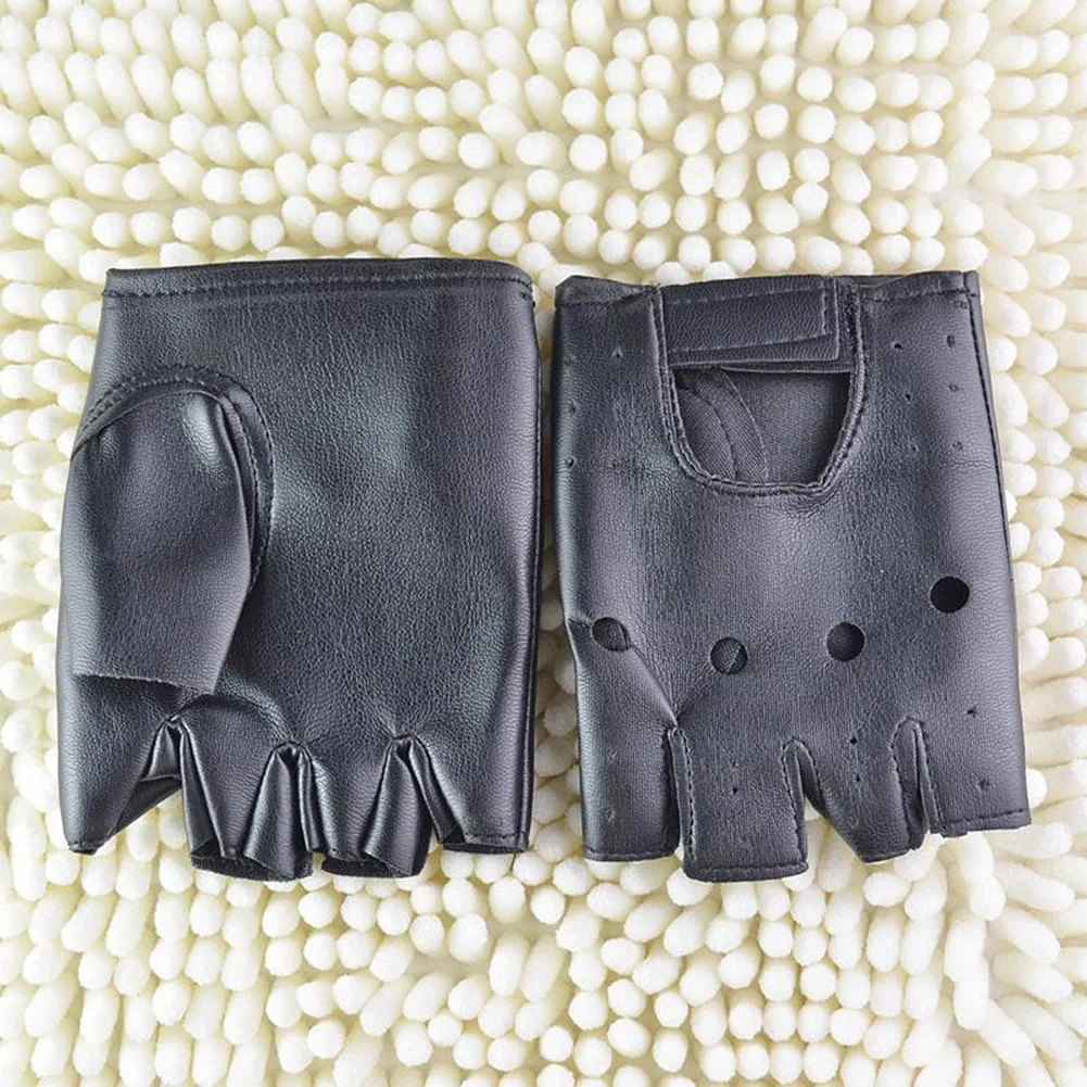 1 Pair Black PU Leather Fingerless Gloves Solid Female Half Finger Driving Women Fashion Punk Gloves