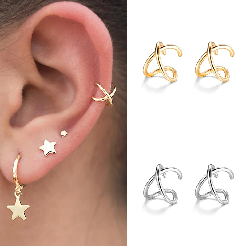 1 pcs Real 925 Sterling Silver Cross Ear Cuff Non Pierced Earrings for Women Micro Small Clip on Earrings Cartilage Jewelry A30