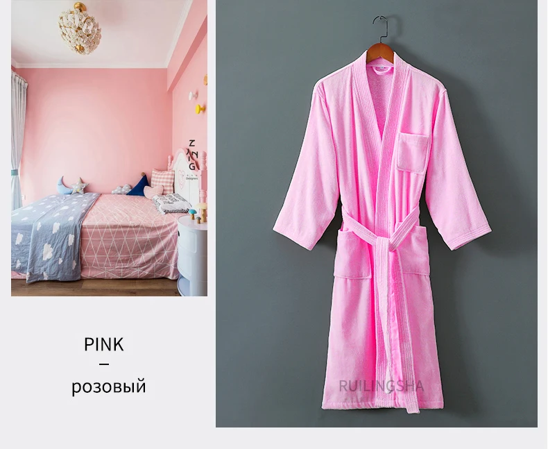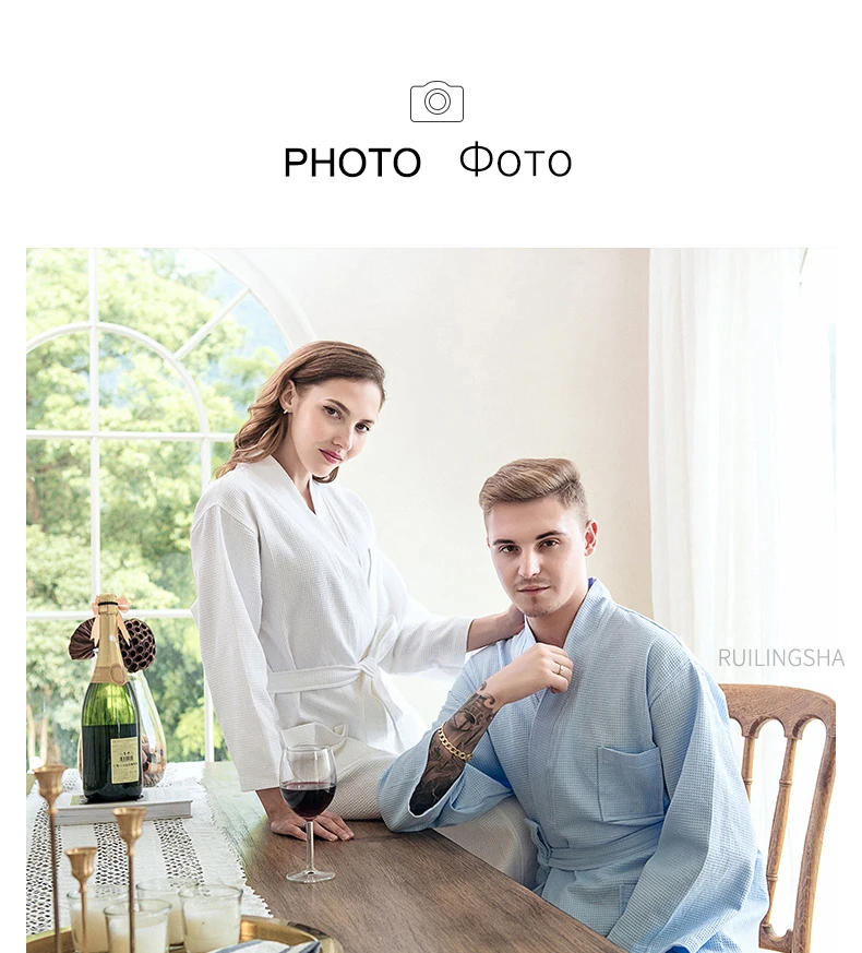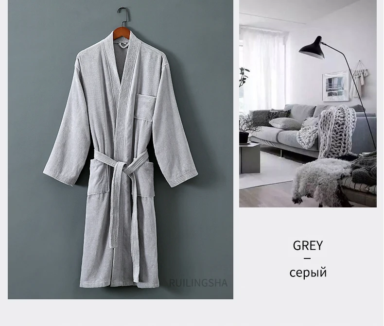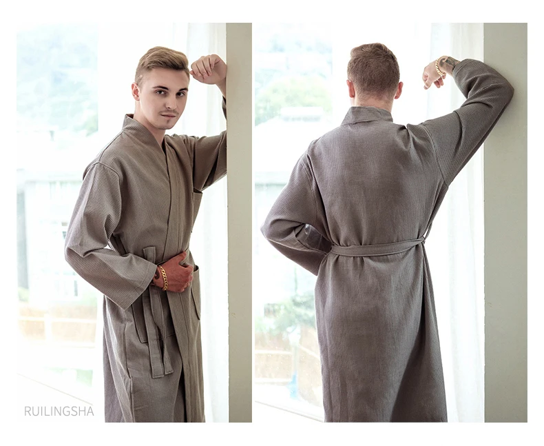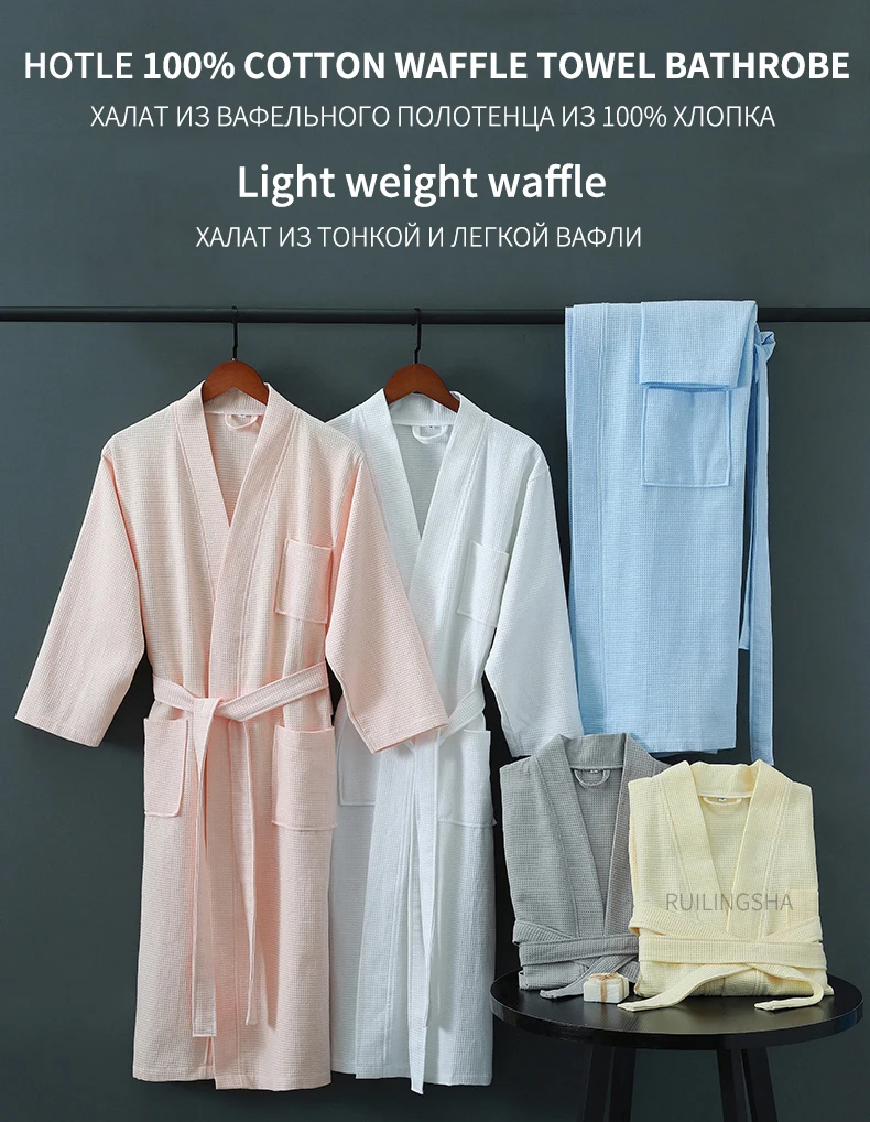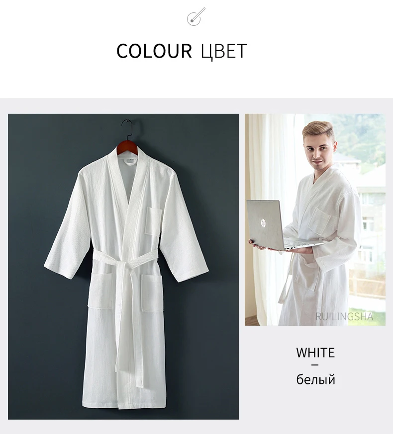 100% Cotton Long Thick Absorbent Terry Bath Robe Kimono Men LightWeight Waffle Towel Bathrobe Plus Sleepwear Women Dressing Gown