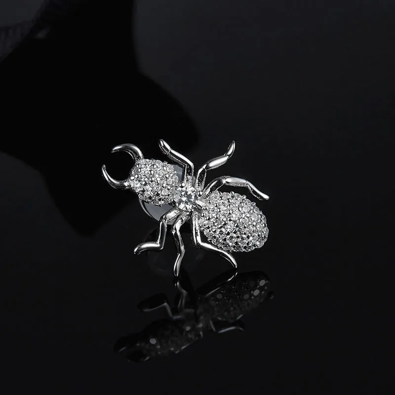 100% S925 sterling silver luxury brand authentic independent personality unilateral ant earrings zircon fine ladies jewelry