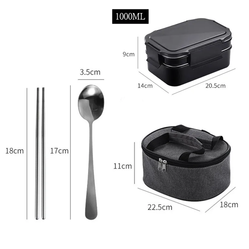 1000ml Double Layers Stainless Steel 304 Lunch Box With Insulation Bag Leak-Proof Thermal Bento Box Adult Student Food Container