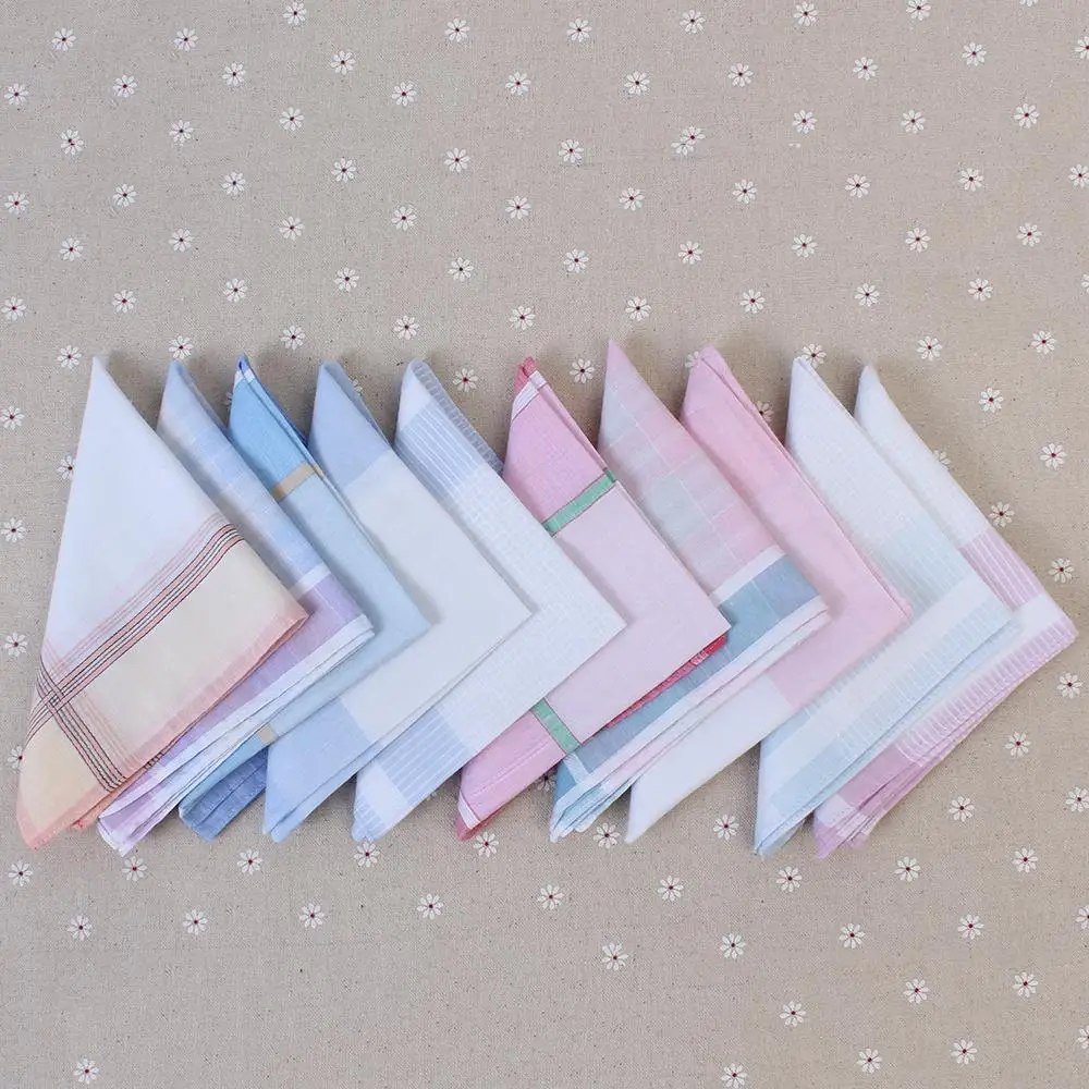 12Pcs Multicolor Plaid Stripe Men Pocket Squares Business Chest Towel Pocket Hanky Handkerchiefs Hankies Scarves Cotton