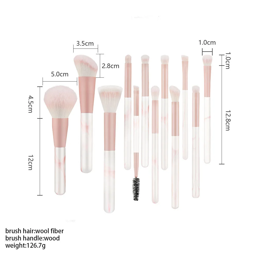 12Pcs Pink Marble Wool Fiber Blending Brush Professional Makeup Brush Set Concealer Blush Brush Makeup Tool
