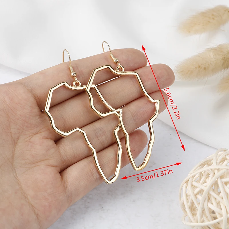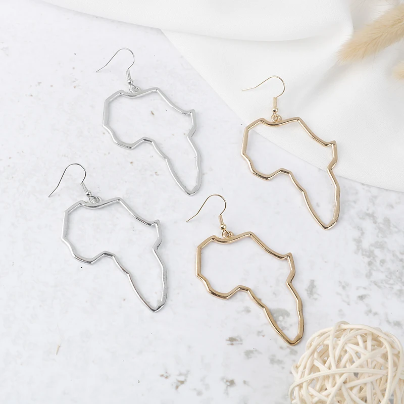 1Pair Cute Alloy Gold Silver Africa Map Ethnic Afrocentric Tribal Hook Drop Earrings For Women Traditional Ethnic Hyperbole Gift