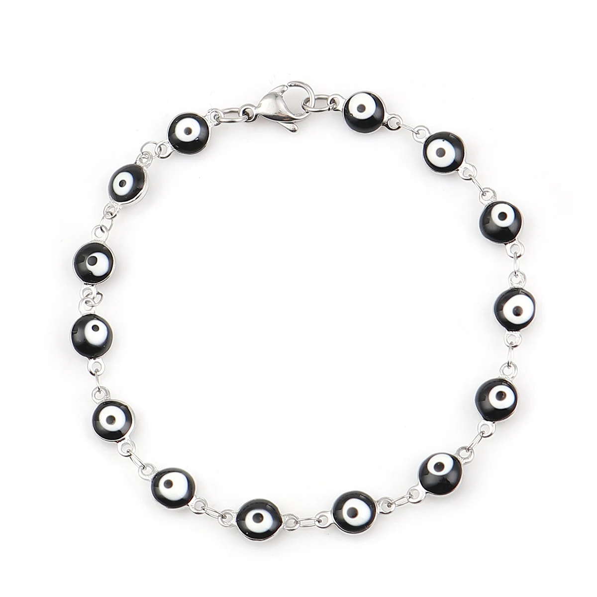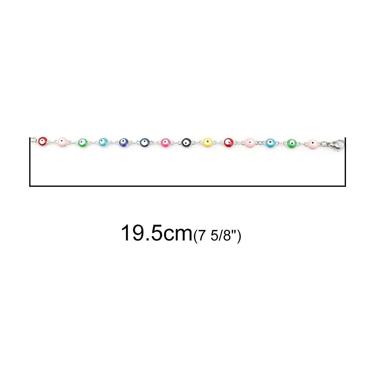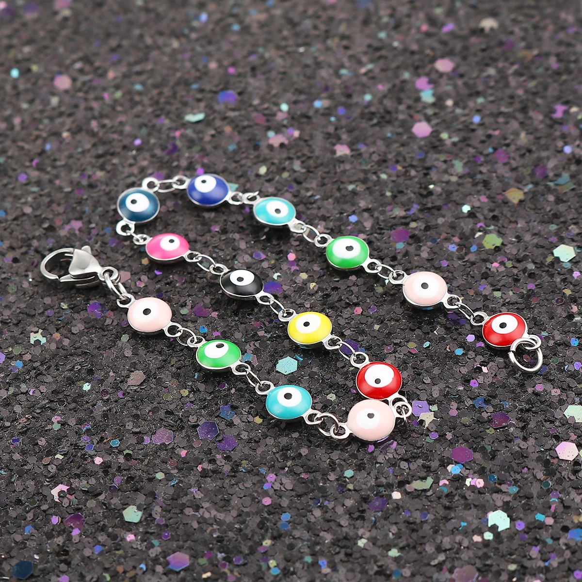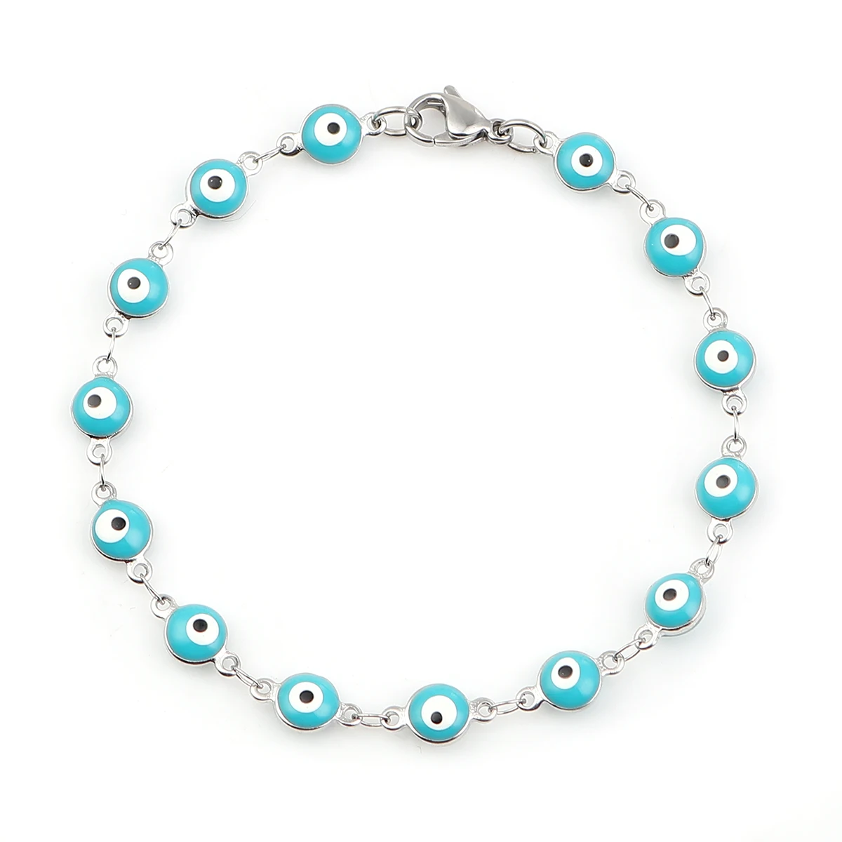1PC 18.7-19.5cm Hot 304 Stainless Steel Bracelets For Men Women Jewelry Gold Color Link Chain Multicolor Evil Eye Enamel Anklet