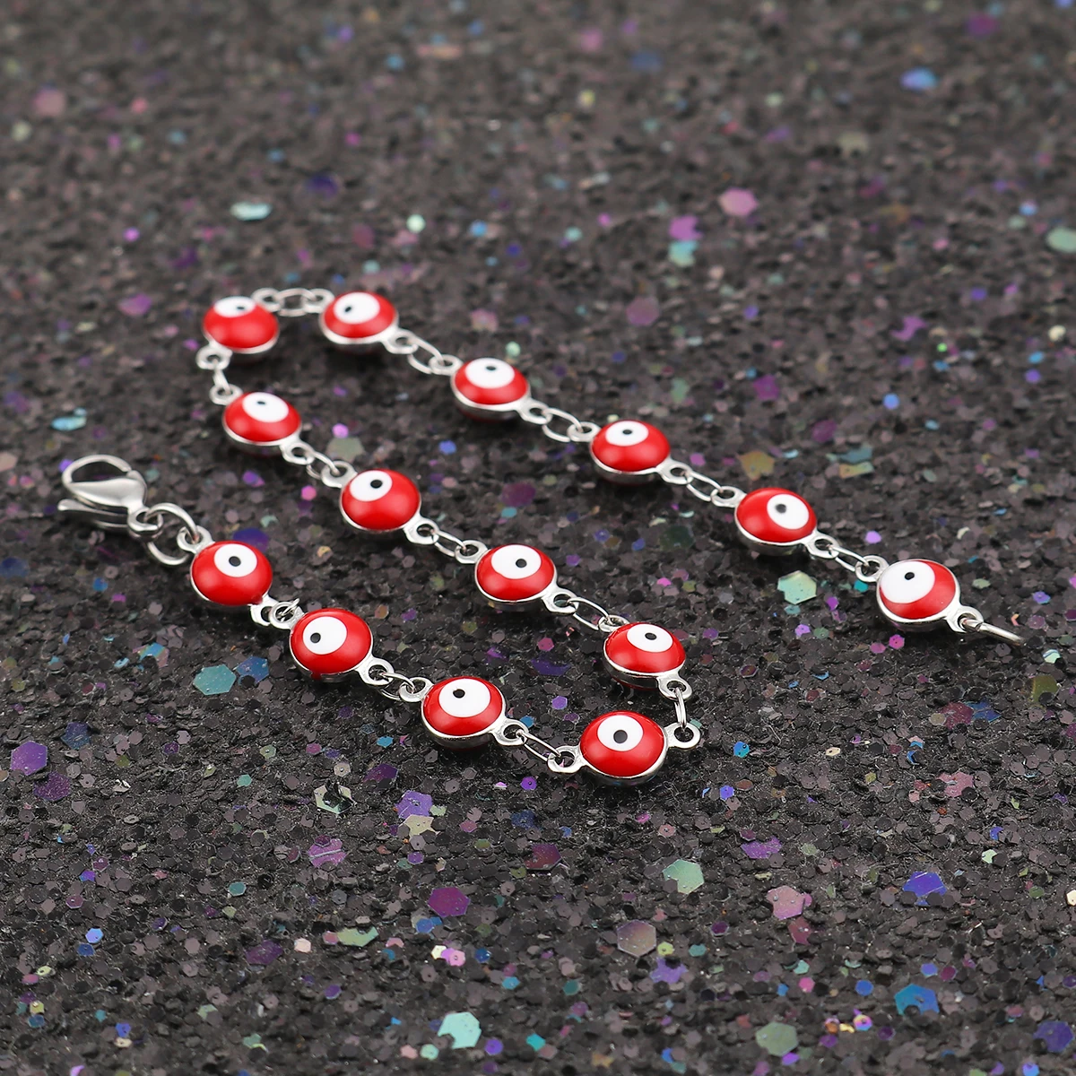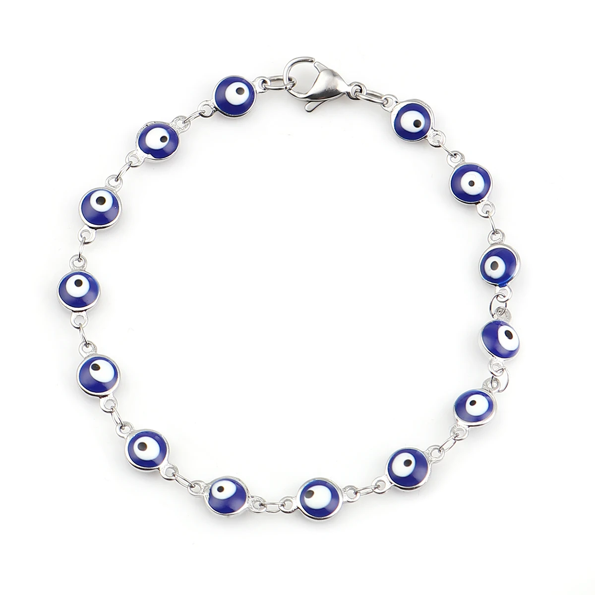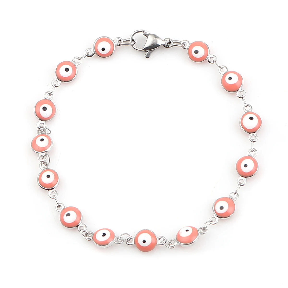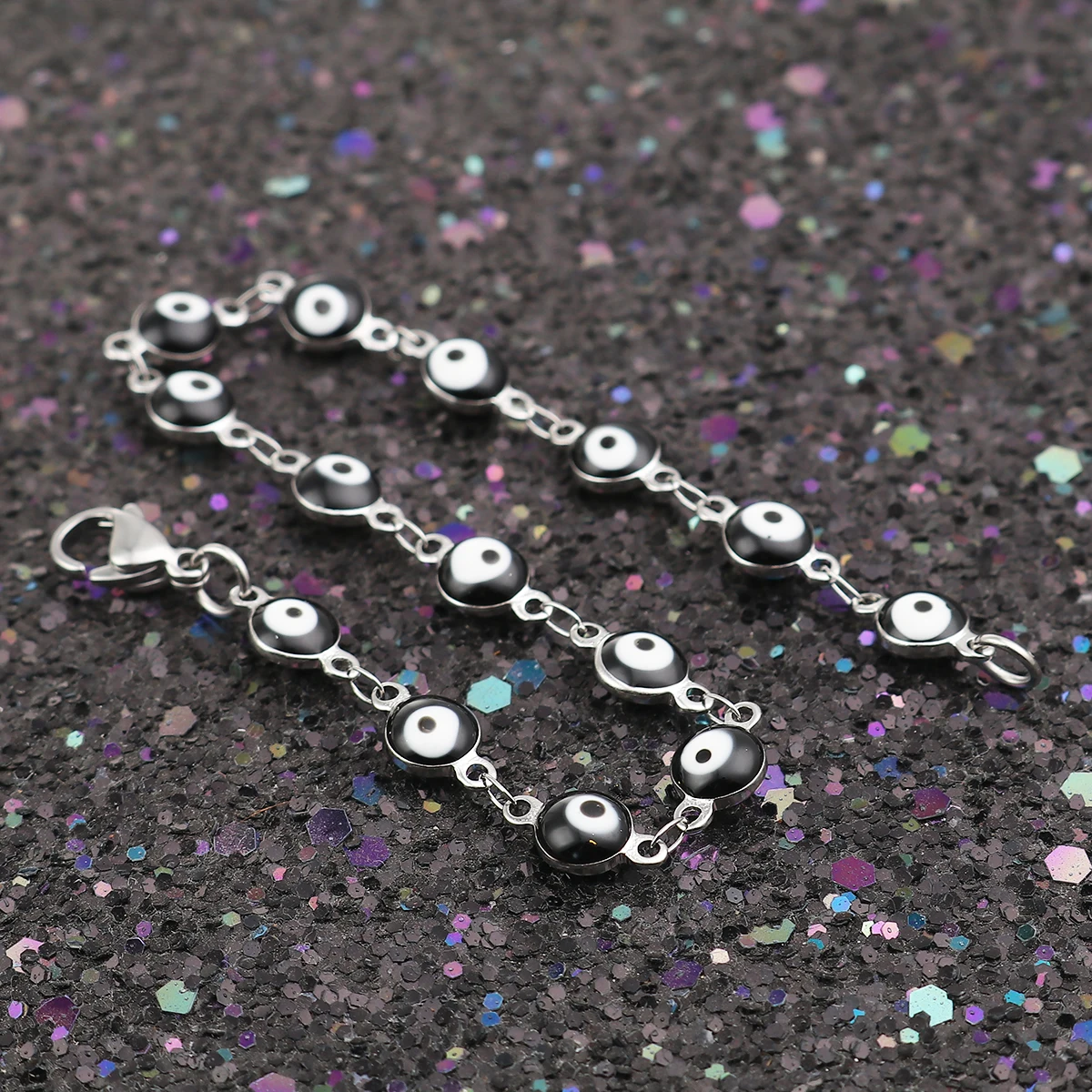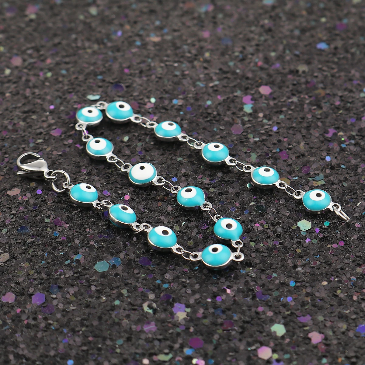 1PC 18.7-19.5cm Hot 304 Stainless Steel Bracelets For Men Women Jewelry Gold Color Link Chain Multicolor Evil Eye Enamel Anklet