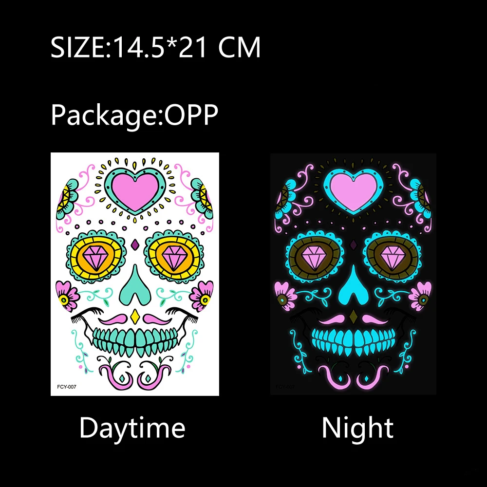 1pc Luminous Tattoo Ghost Fake Tattoo Glowing In Dark Waterproof Temporary Tattoo Stickers Halloween Party Festival Scar Sticker