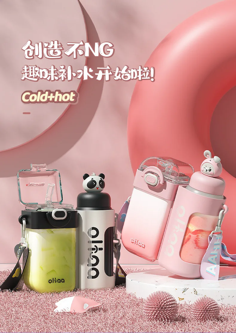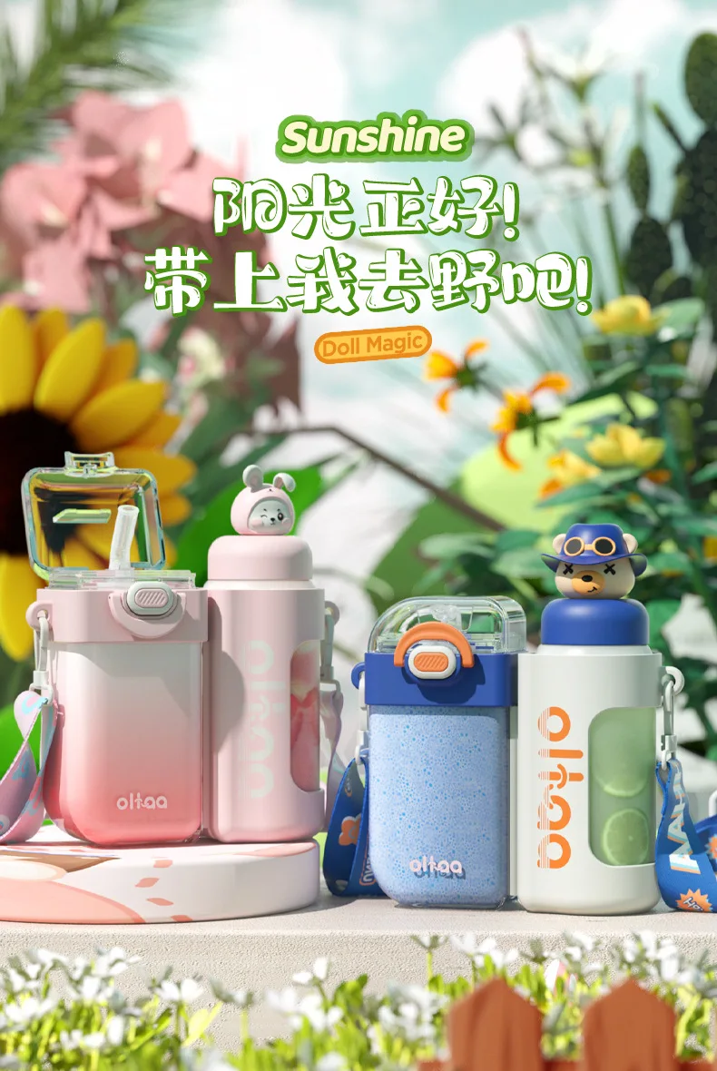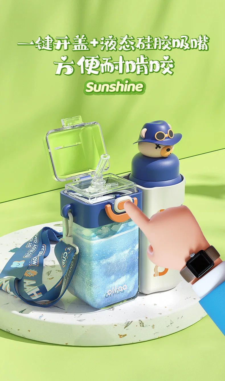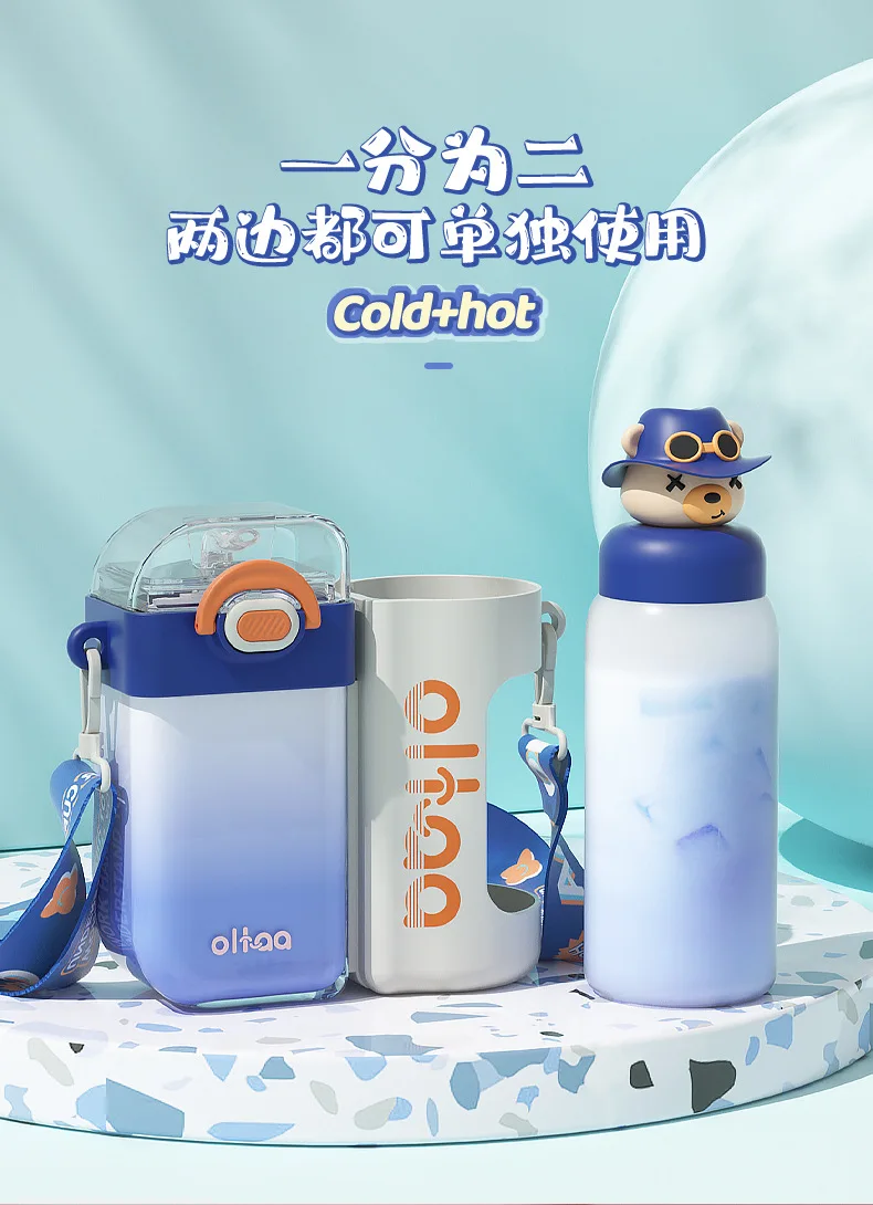 2 in 1 Cute Children Double Drinking Water Bottle for kids w/ Straw Portable Bottle Student Couple Plastic Cup Gift School Kids