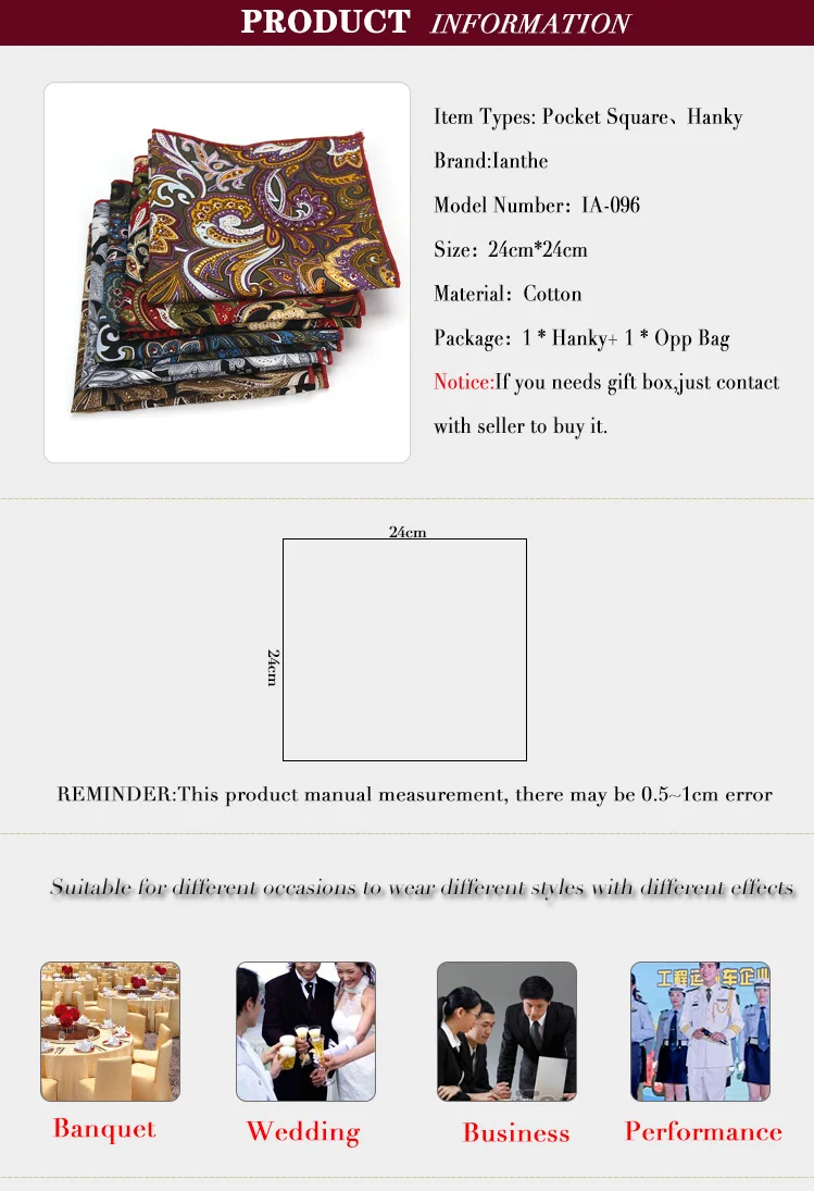 2018 Brand New Men's Fashion Cotton Pocket Squares For Men Paisley Square Handkerchief Wedding Classic Suit Pocket Hankies Towel