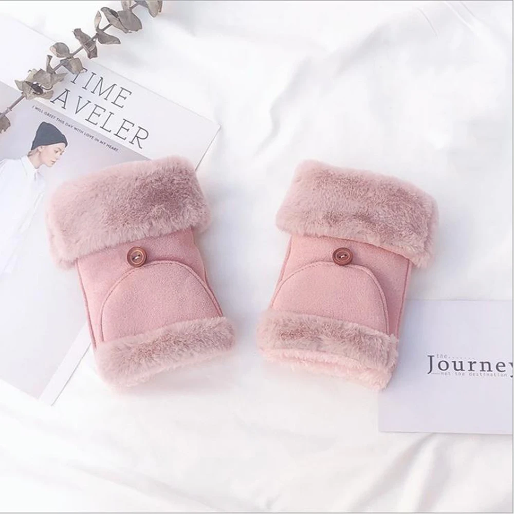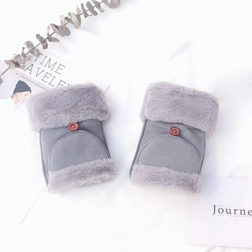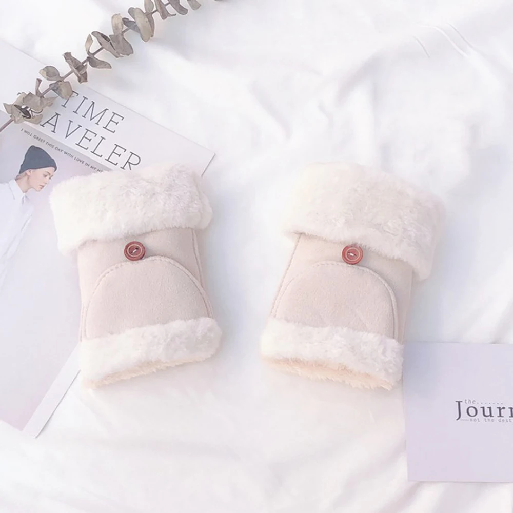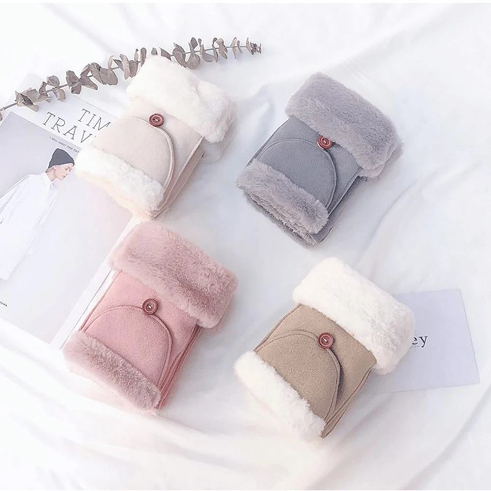 2019 Fashion Women Fingerless Flip Gloves Synthetic Suede Rabbit Hair Flip Dual-Use Student Warm Plus Velvet Riding Gloves