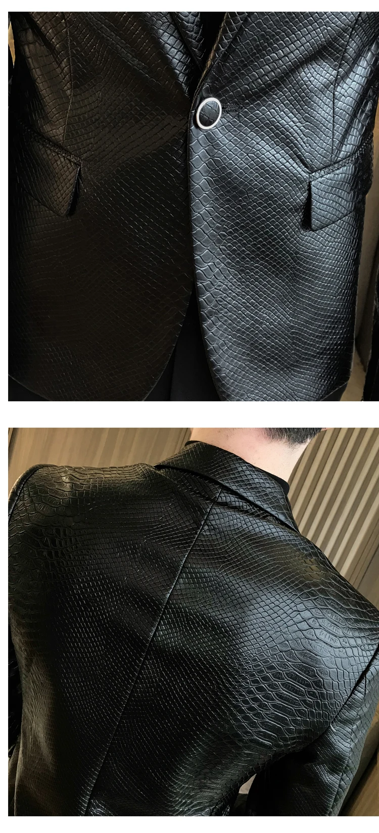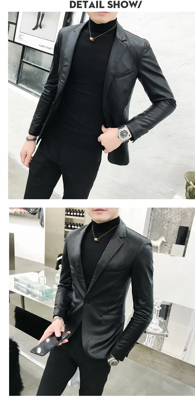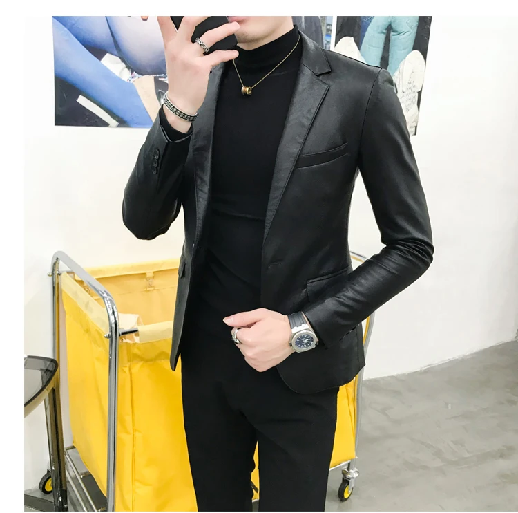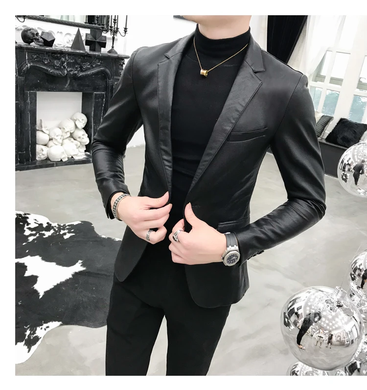 2019 New Single Buckle PU Leather Blazer fashion classic snake pattern slim suit jacket Masculino black retro prom pioneer men