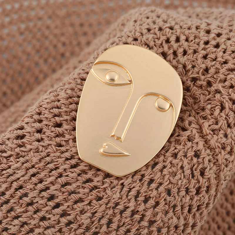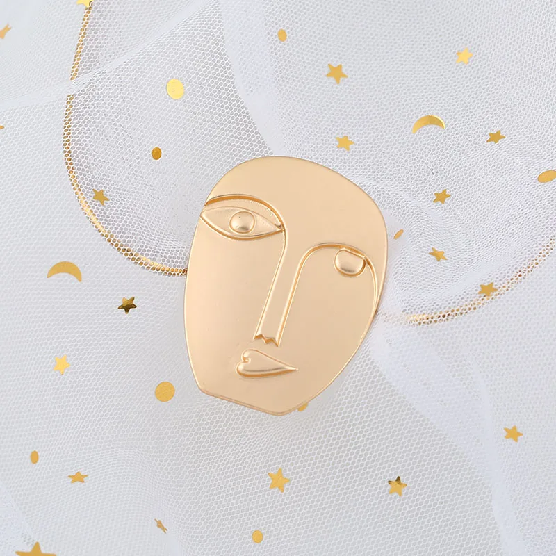 2020, Female, Exaggerated, Male and Female, Abstract, Brooch, Metal, Suit Accessories, Half Face, Portrait, Women Brooch, Party
