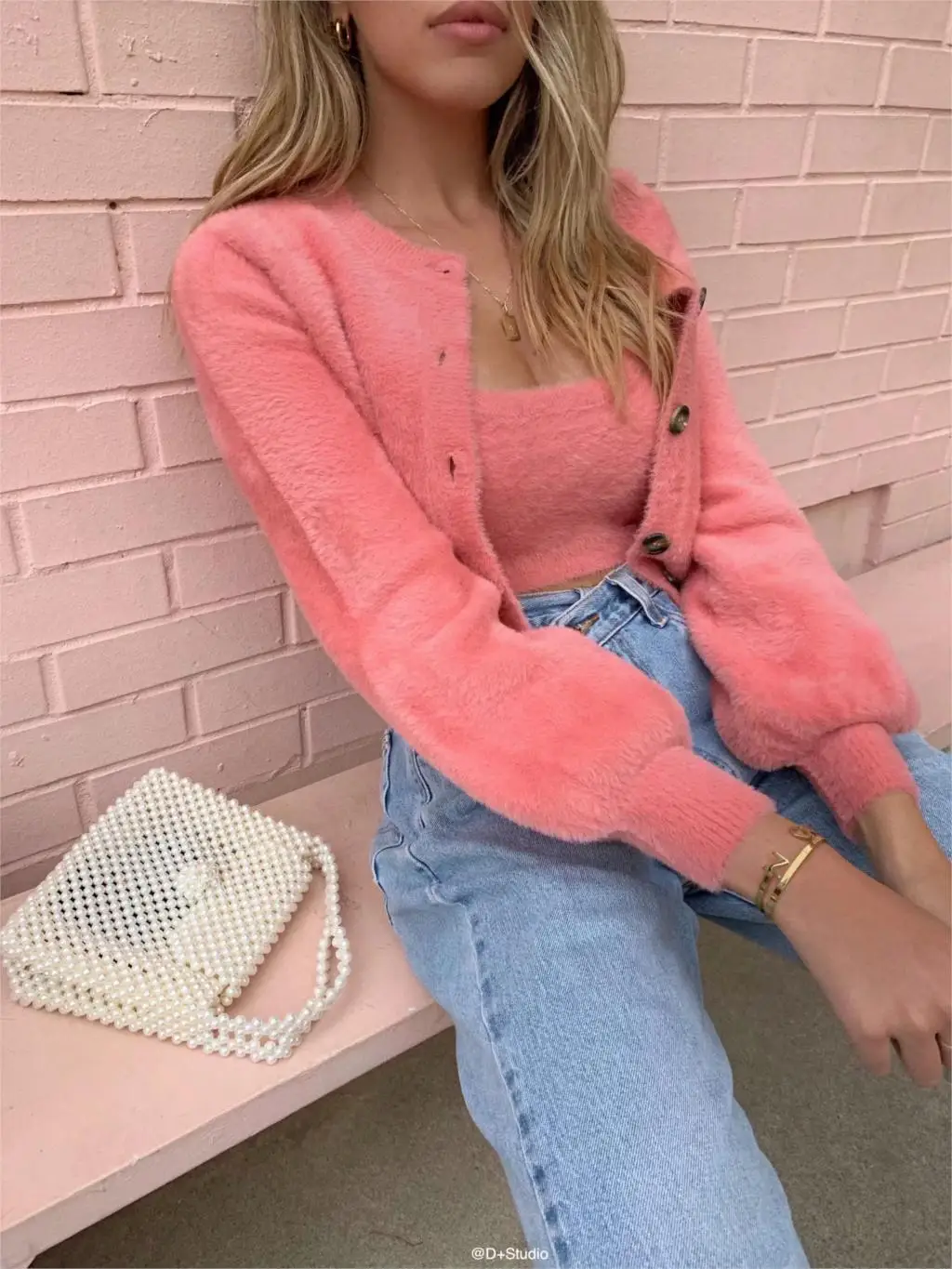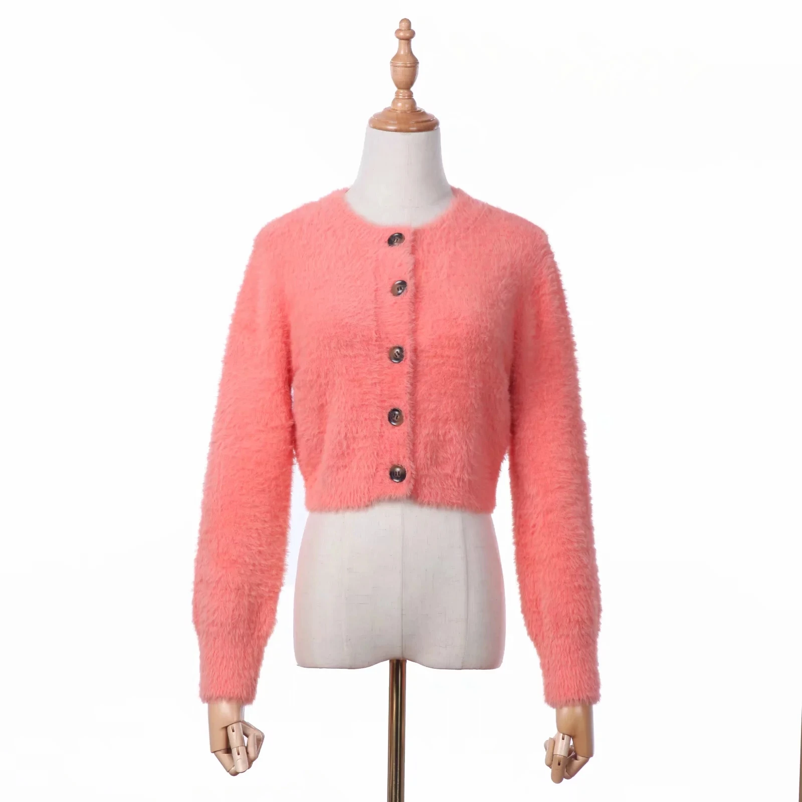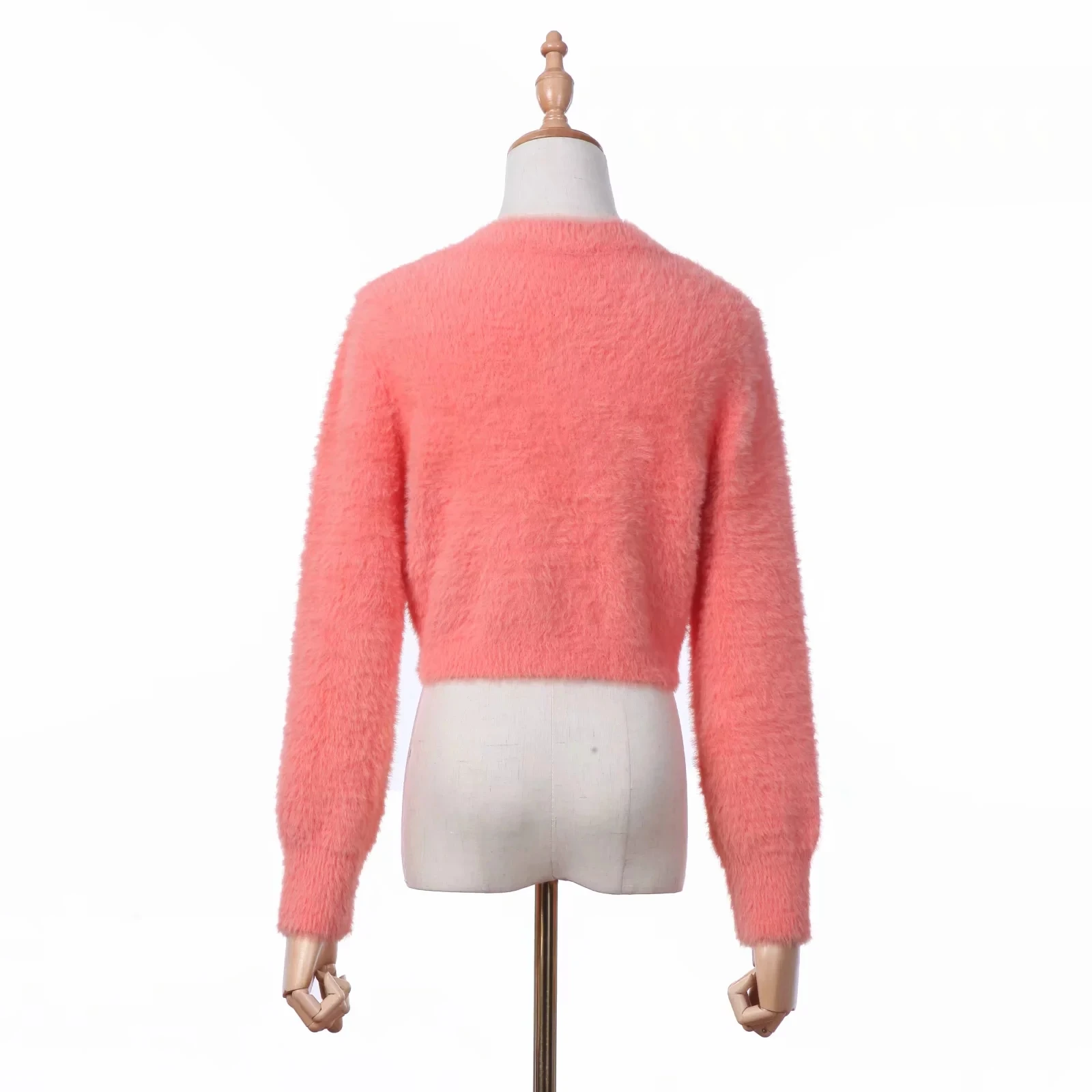 2020 Korean button long sleeve sweater women sexy cropped sweater kawaii pink cropped cardigan women mohair sweater tops fall