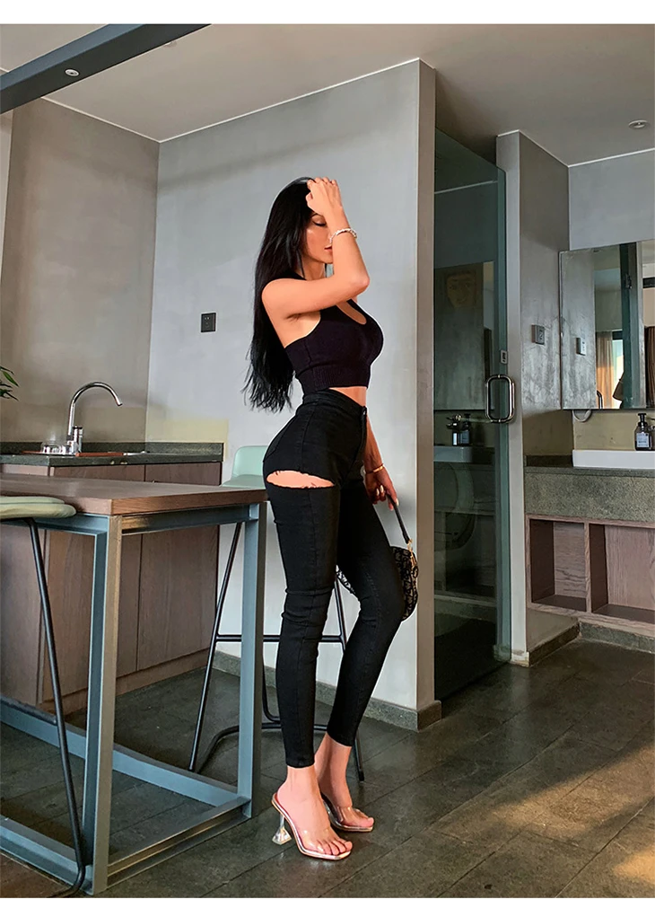 2020 New High Waist Ripped Jeans For Women Sexy Vintage Mom Boyfriend Jeans Femme Skinny Denim Pants Pencil Trousers Hot Sale
