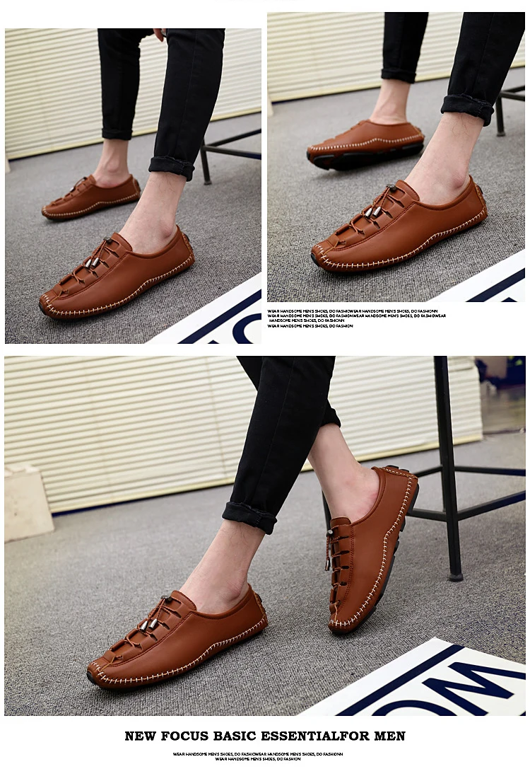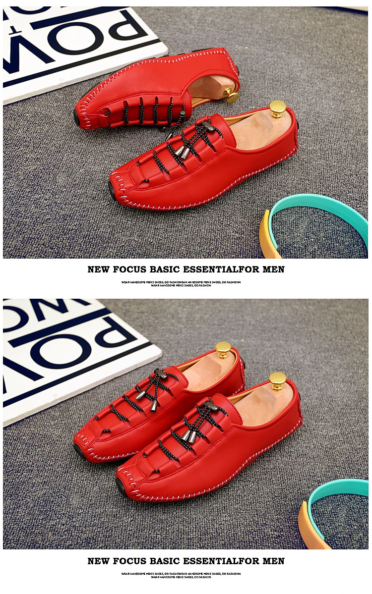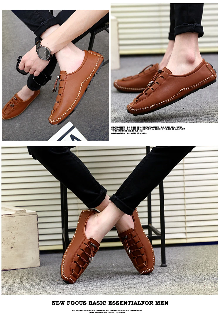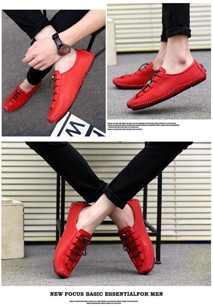 2020 New Retro Handmade Men Casual Shoes Soft Comfortable Leather Mens Loafers Black Red Brown Moccasin Breathable Driving Shoes
