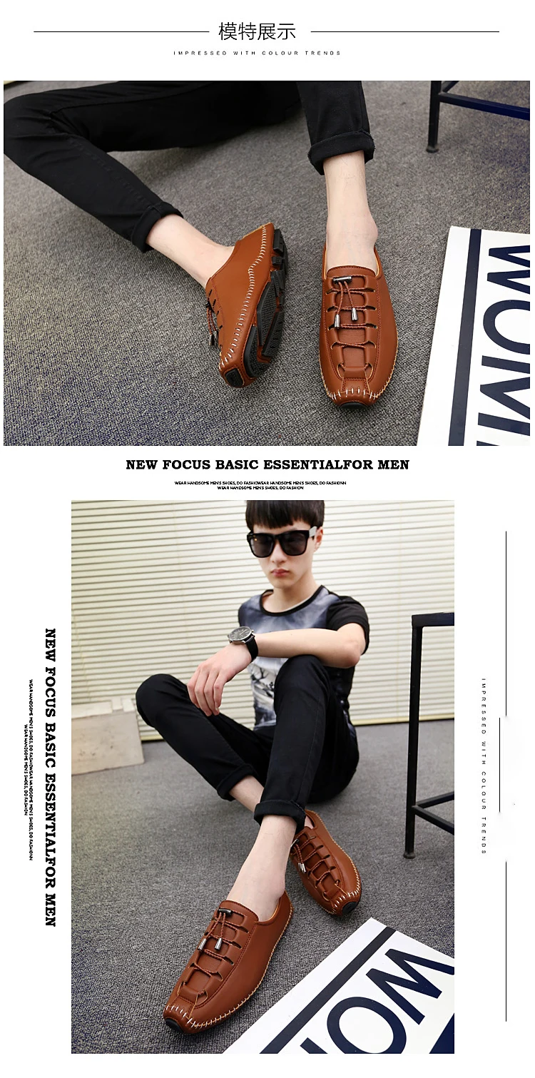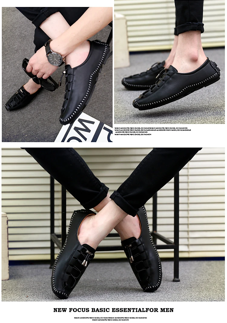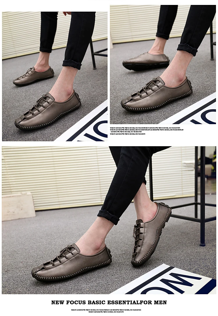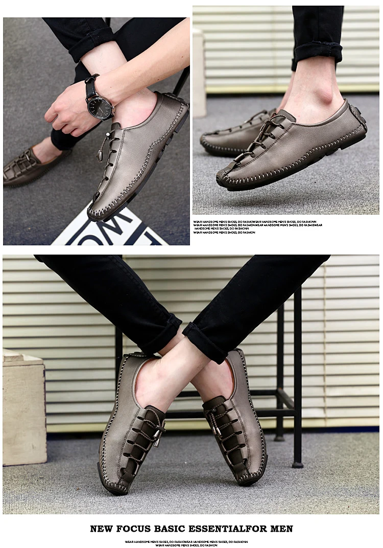2020 New Retro Handmade Men Casual Shoes Soft Comfortable Leather Mens Loafers Black Red Brown Moccasin Breathable Driving Shoes