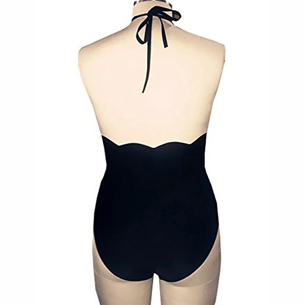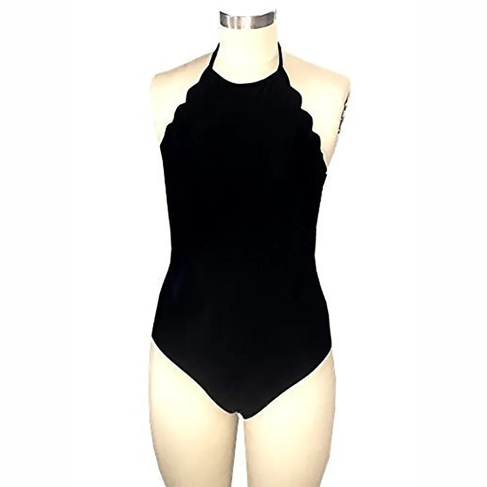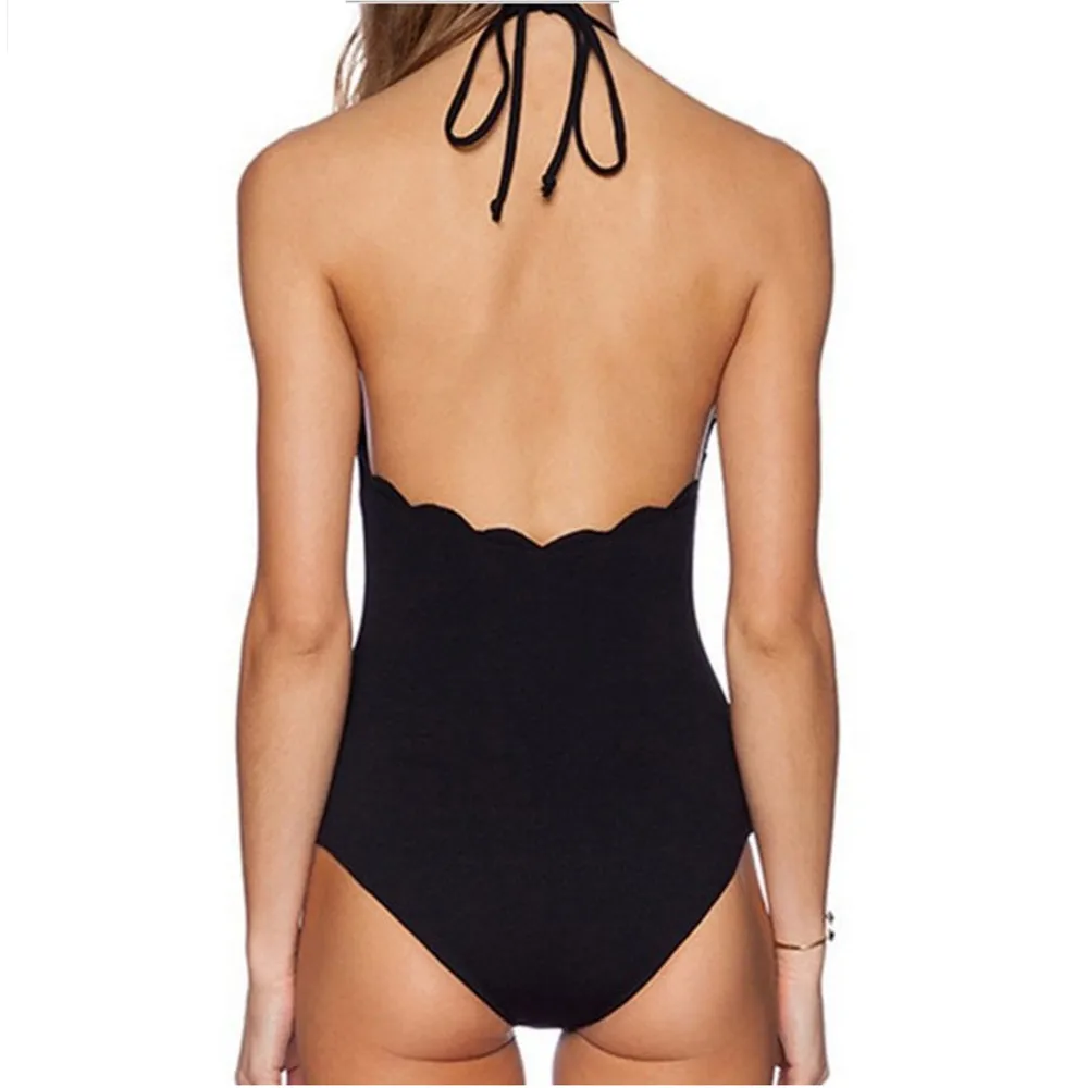 2020 One Piece Black Swimsuit Women Backless Bathing Suit Solid Color White Wave Cut-Edge Bodysuits Sexy Bikini Swimwear