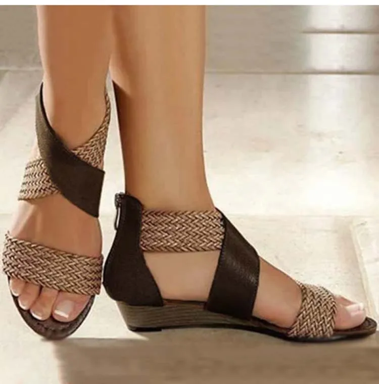 2020 Summer Sandals Shoes Women Fashion Bohemia Style Beach Comfortable Shoes Woman Retro Weave Wedge Female Sandals Plus Size