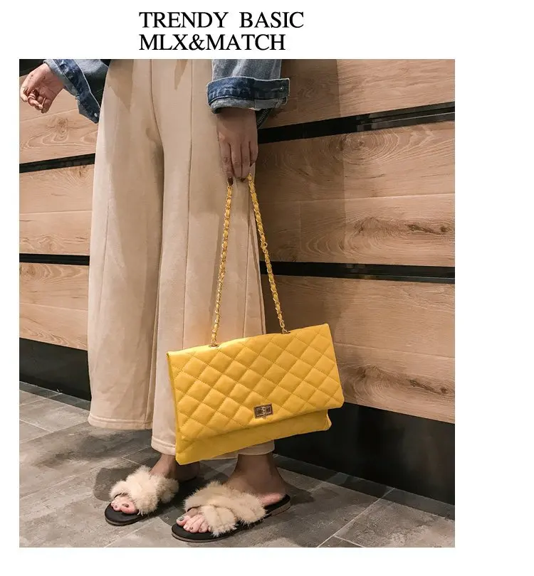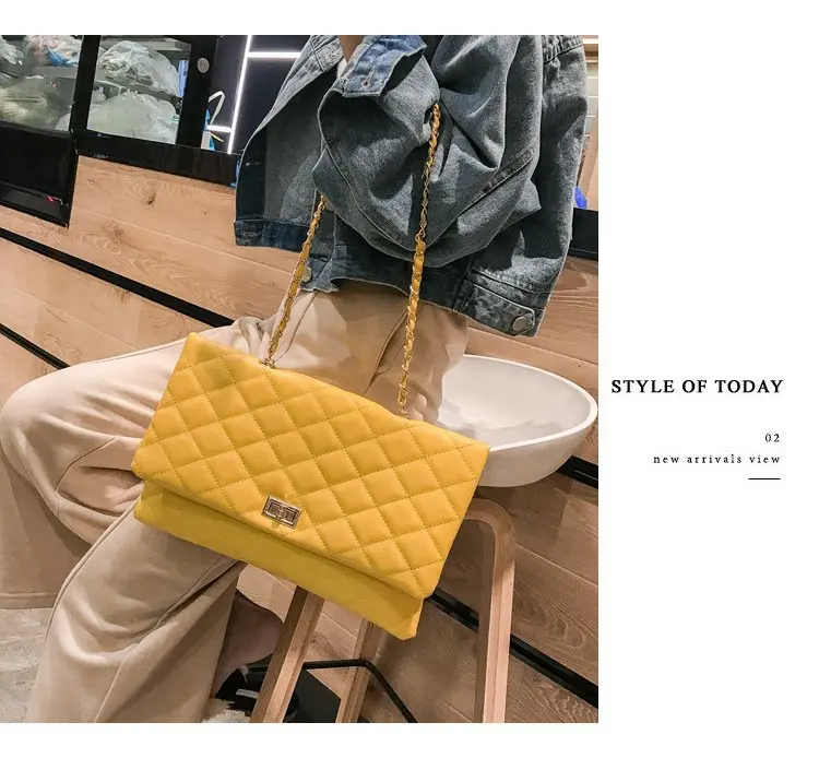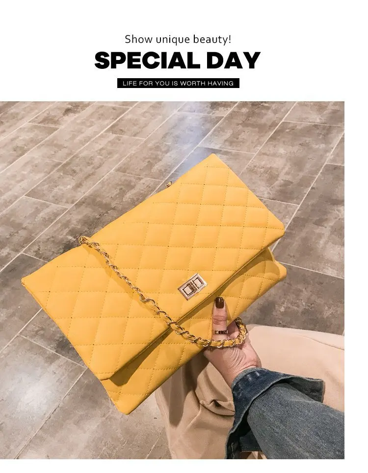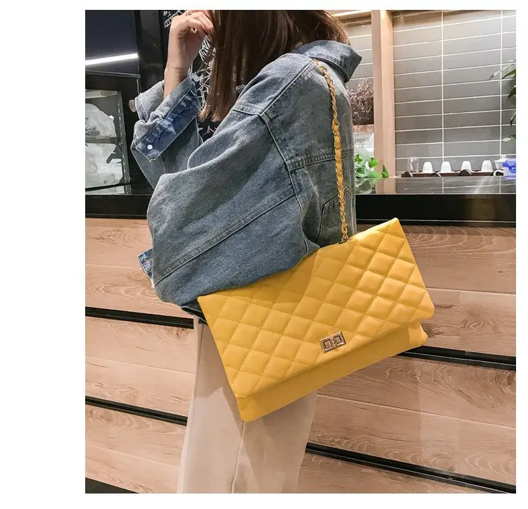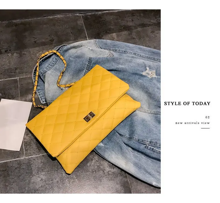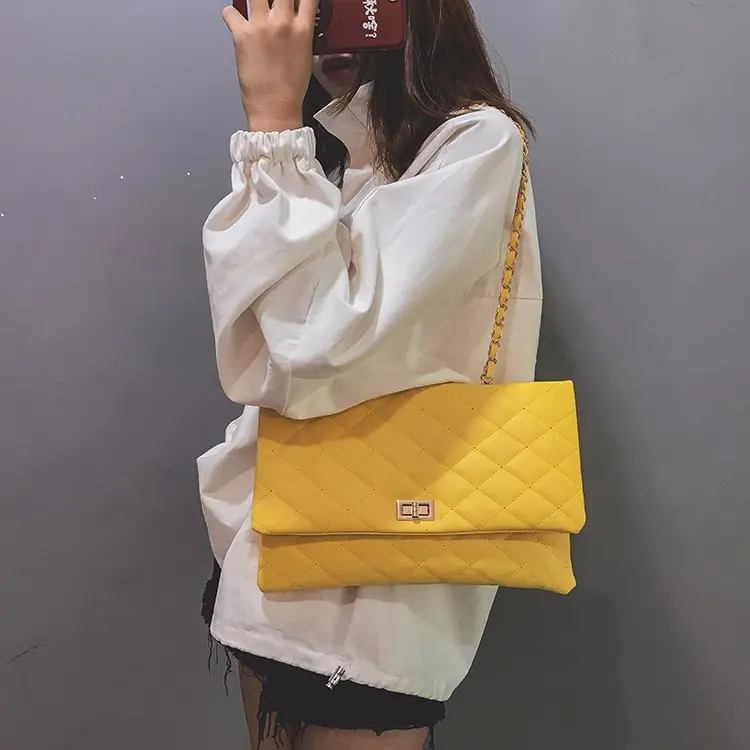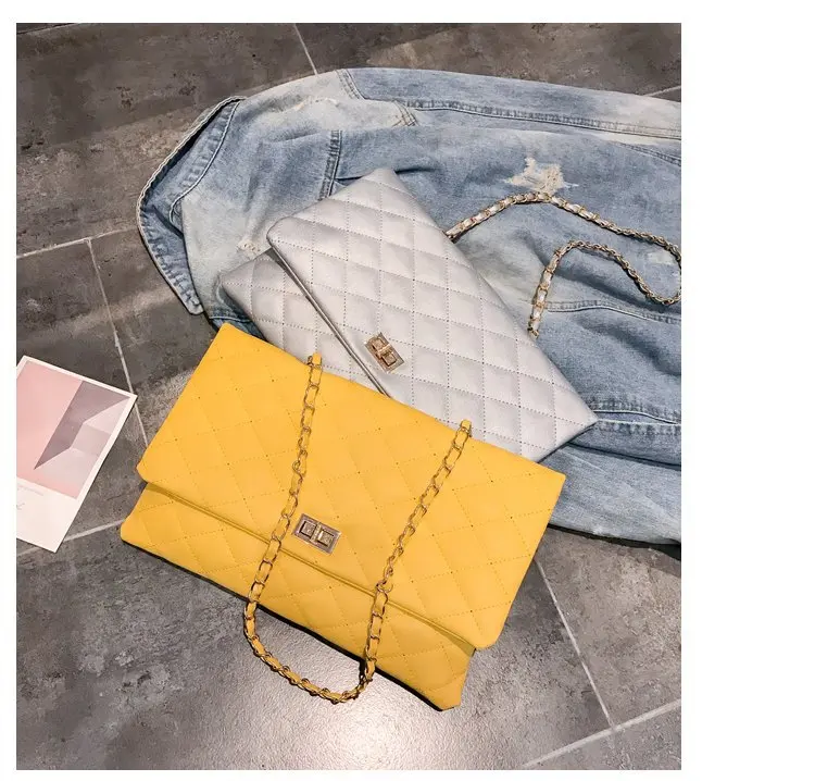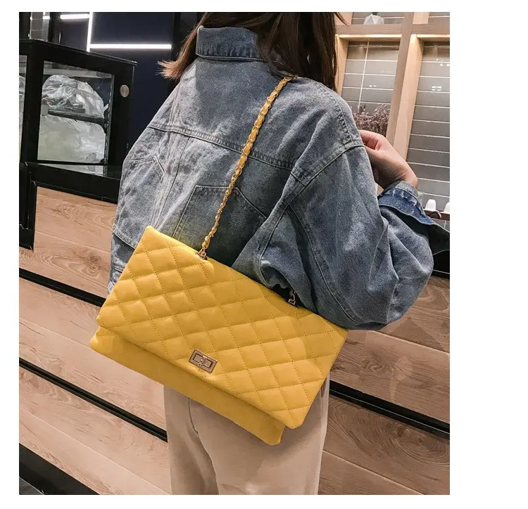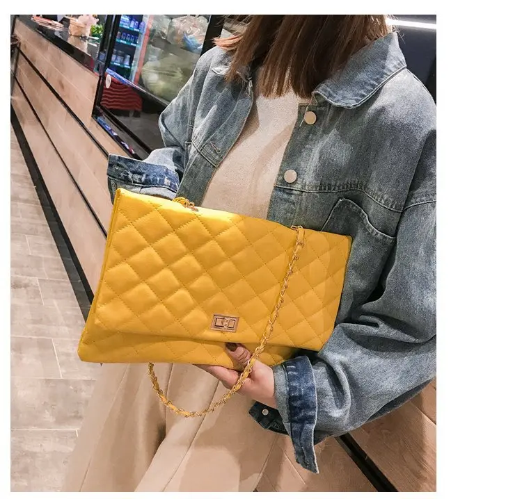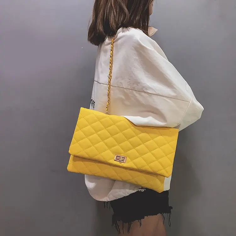 2020 Trend Luxury Brand Designer Quilted Purse Handbag Clutch Bags Yellow Envelope Big Tote Shoulder Crossbody Bag Women Sac