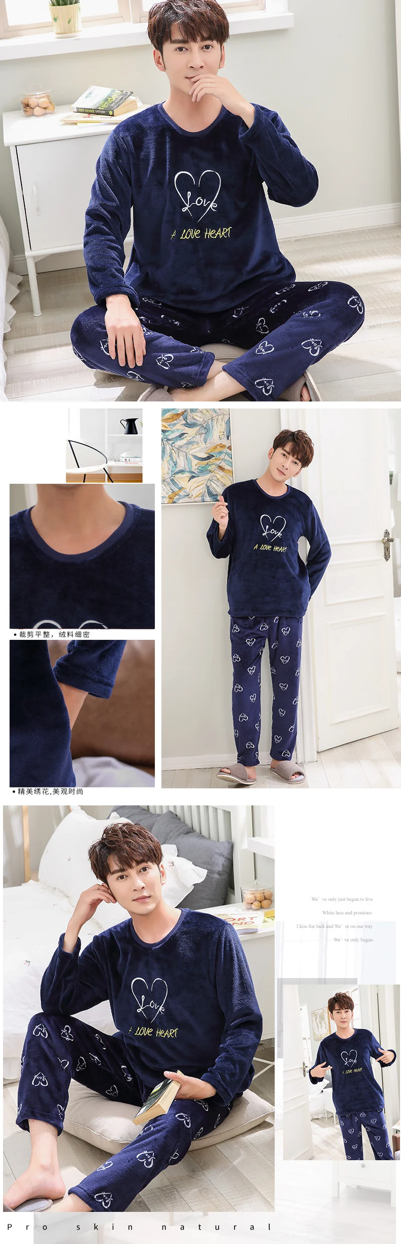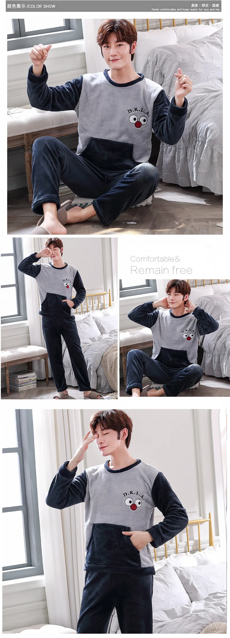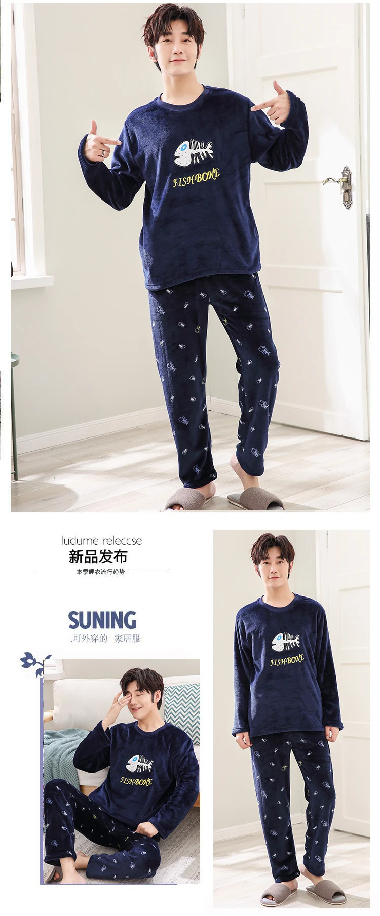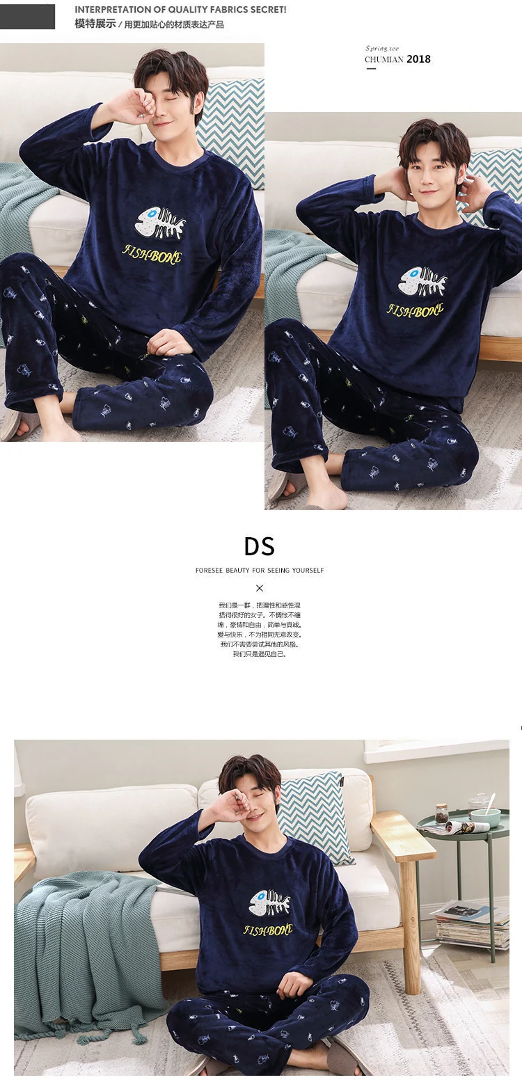2020 Winter Thick Warm Flannel Pajama Sets for Men Long Sleeve Coral Velvet Sleepwear Suit Male Loungewear Homewear Home Clothes