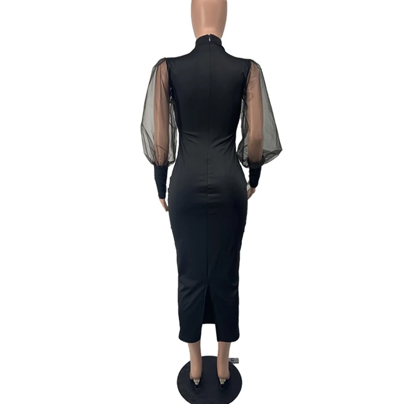 Women Summer Midi Dress Mesh Patchwork Full Sleeve High Waist Sexy Party Night Club Street Bandage Dresses Vestidos GL211