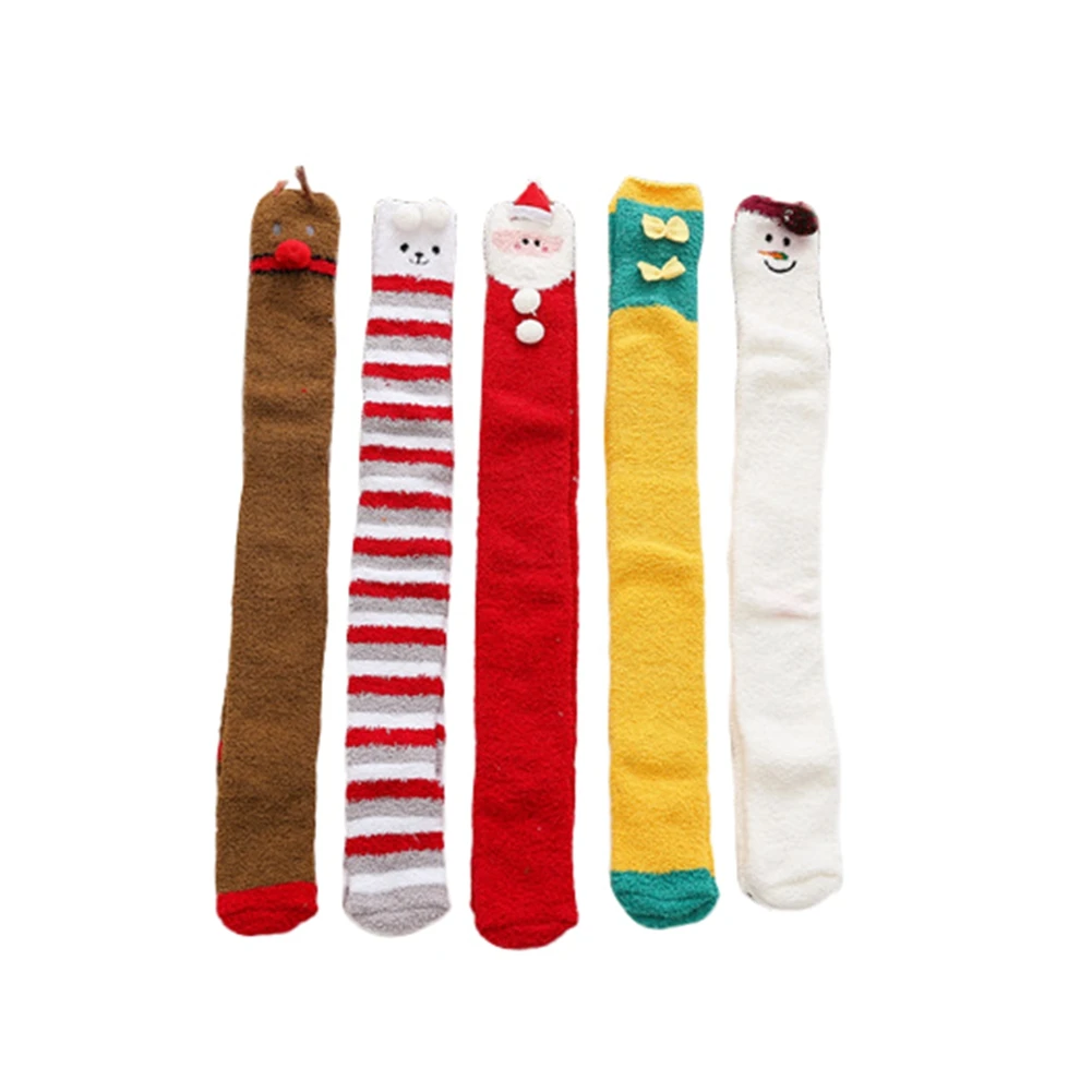 2021 Christmas Girl Stockings Christmas Cartoon Pattern Print Thigh High Stockings Winter Warm Socks For Women