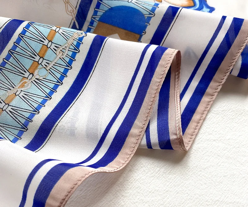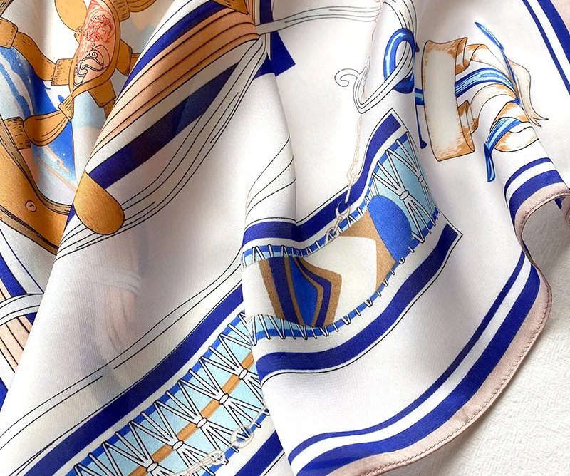 2021 Fashion 70*70cm Square Women Ocean Anchor Silk Shawl Scarf Office Lady Hair Neck Headband Foulards Headcloth Muslim Hijab