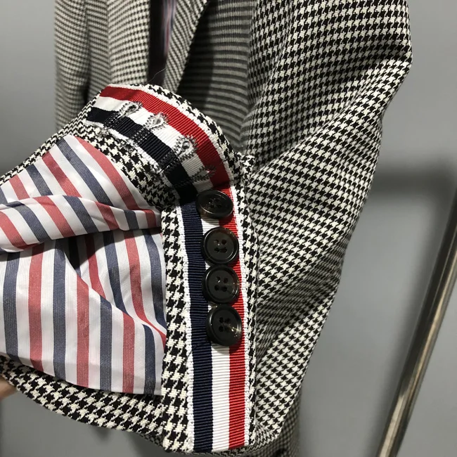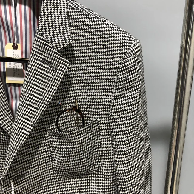 2021 Fashion TB THOM Brand Blazer Men Clothing Casual Gray Plaid Suit Slim Fit Men's Jacket Single Breasted Wool Winter Coat