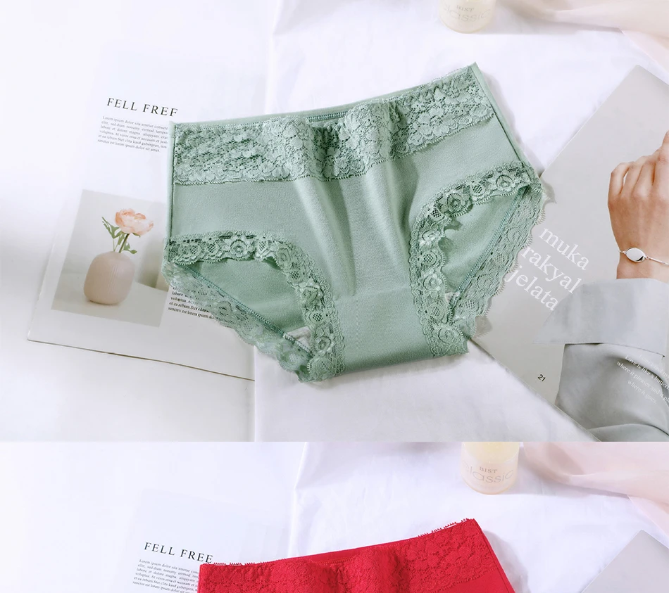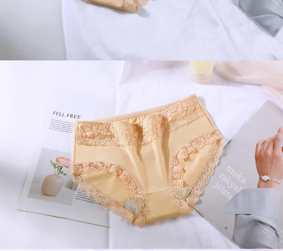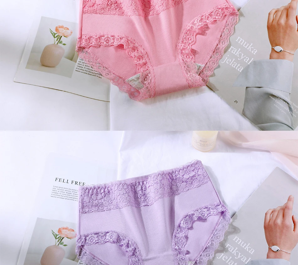 2021 High-rise Cotton Sexy Lingerie Women's Underwear For Women Lace Panties Briefs Solid Color Girls Cotton Female Shorts