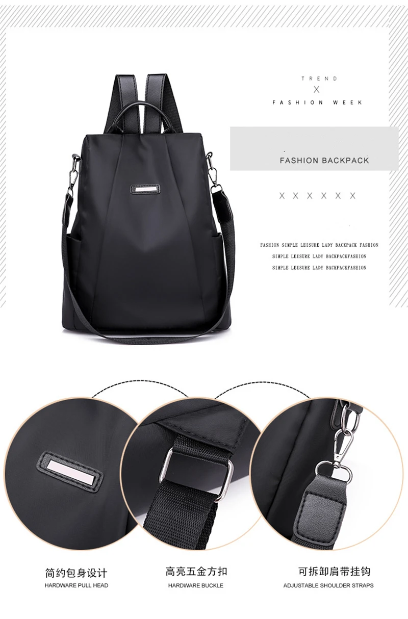 2021 Hot Women's Backpack Casual Nylon Solid Color School Bag Fashion Detachable Shoulder Strap Shoulder Bag