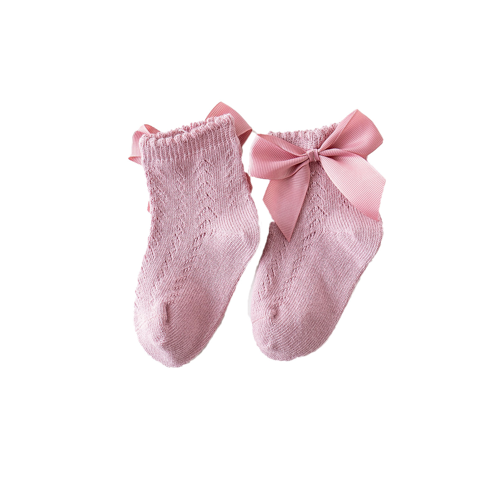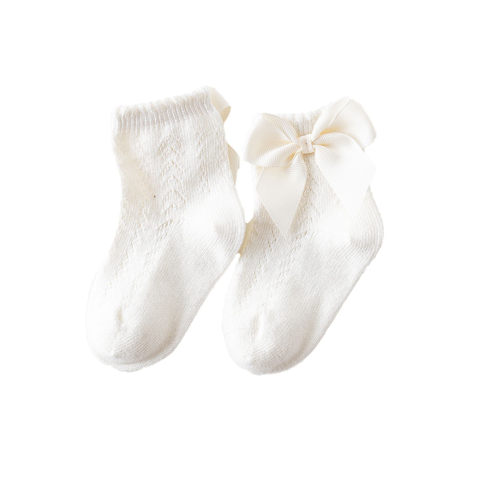 Medium tube sock, solid color, big bowknot, hollow out design, beautiful and fashionable.
