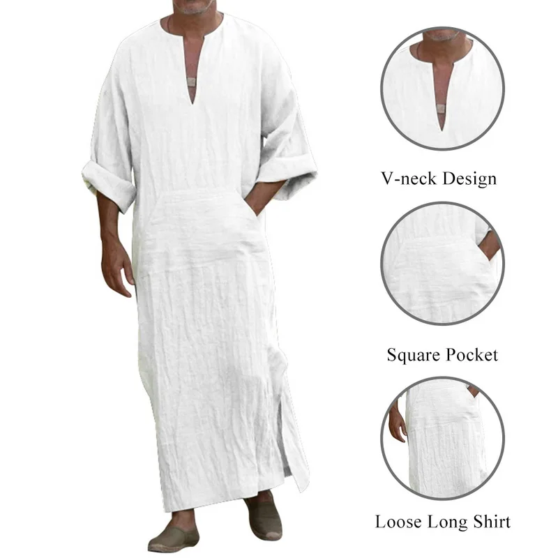2021 Muslim Men's Shirt Plus Size 2020 Casual Loose Long Sleeves Male Pocket Arab Fashion Cotton And Linen Button Plain Robes
