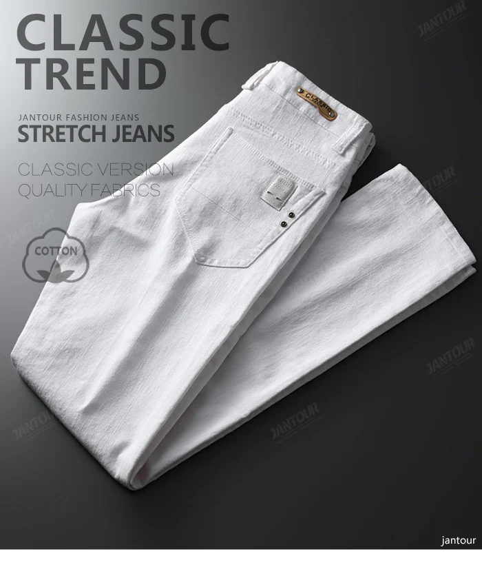 2021 New Classic Style Men's Skinny White Jeans men Cotton Casual Business Stretch Denim Trousers Male Fashion Brand Pants 28-38