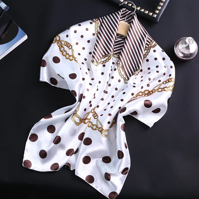 2021 New Fashion Silk Square Scarf For Women 90*90cm Neck Hair Tie Band Bag Warp Soft Neckerchief Hijab Headscarf Female Foulard