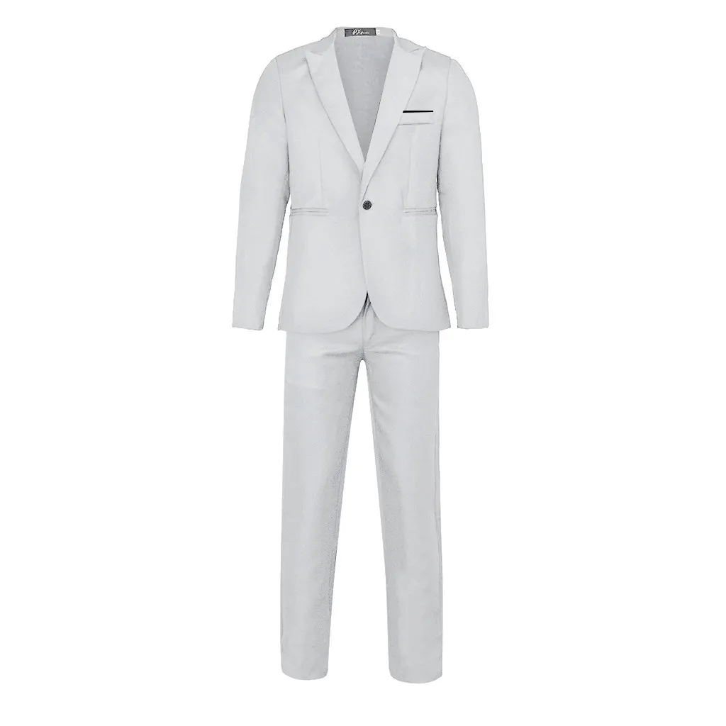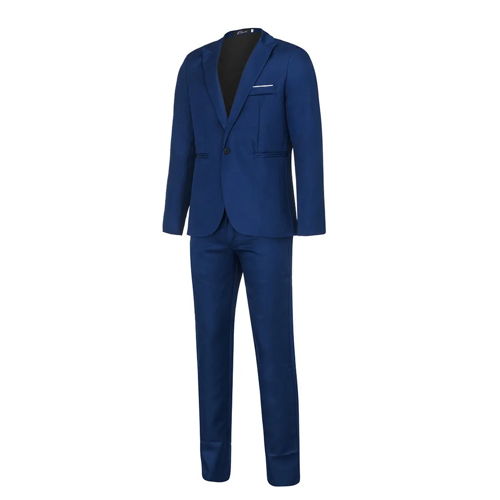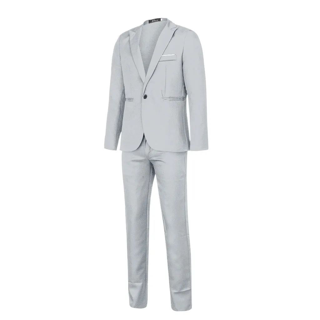 Men's Slim Button Suit Pure Color Dress Blazer Host Show Jacket Coat & Pant