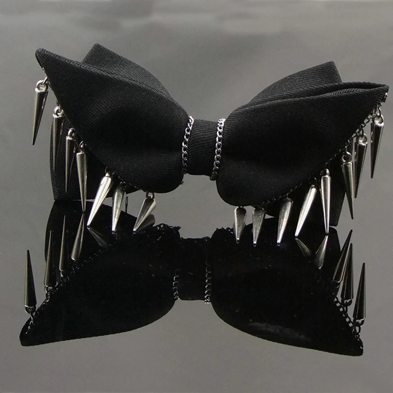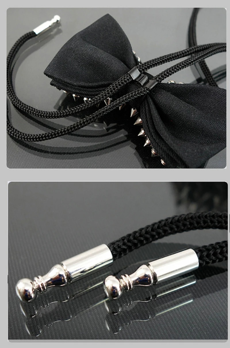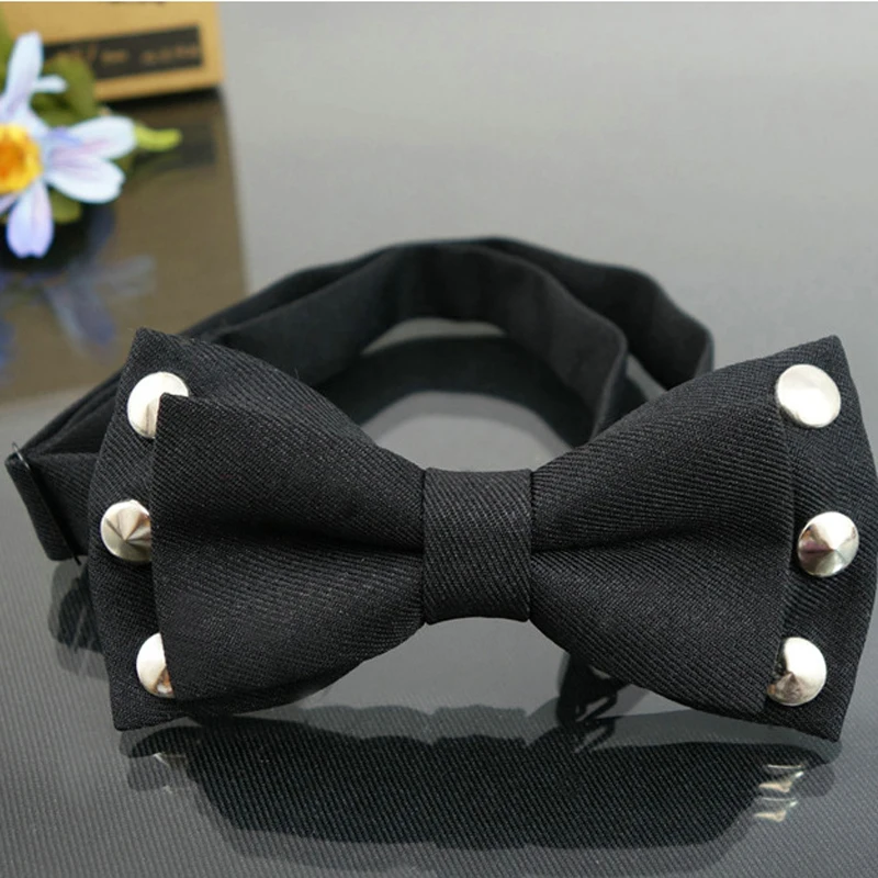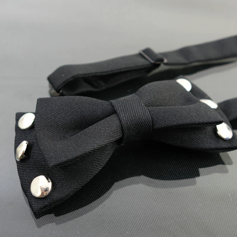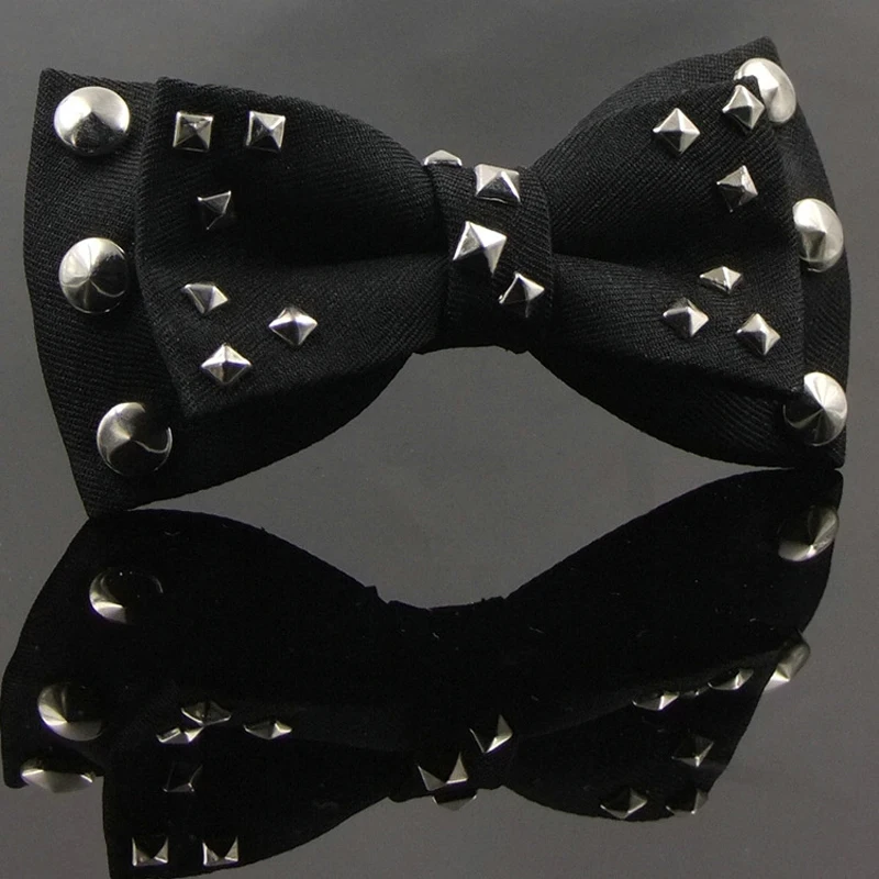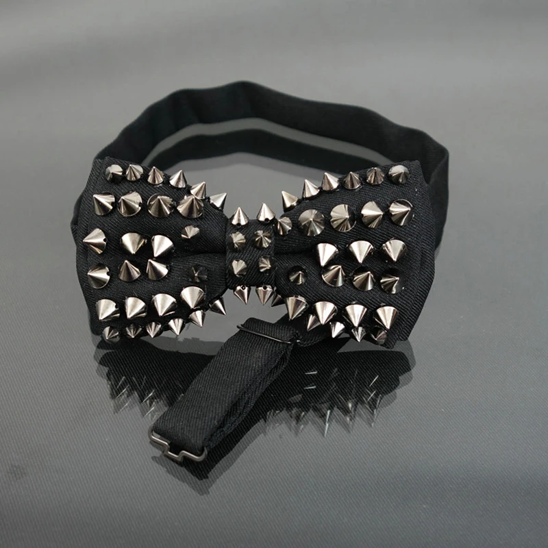 2021 New Mens Fashion Punk Rivet Bow Tie Hip Pop Black Male Special Metal Nail Necktie Rock Style Bowtie