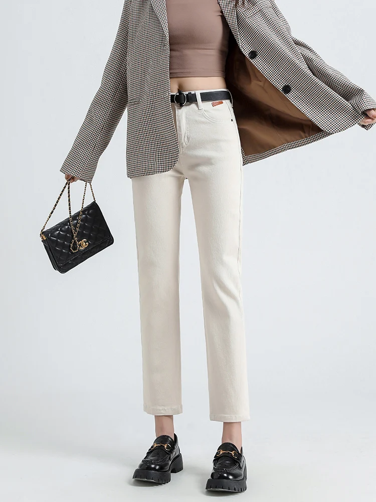2021 New Straight Jeans High Waist Slim Harem Pants For Women Ankle-length Denim Trousers Streetwear Mom Jean Bottoms 802