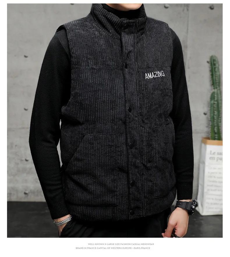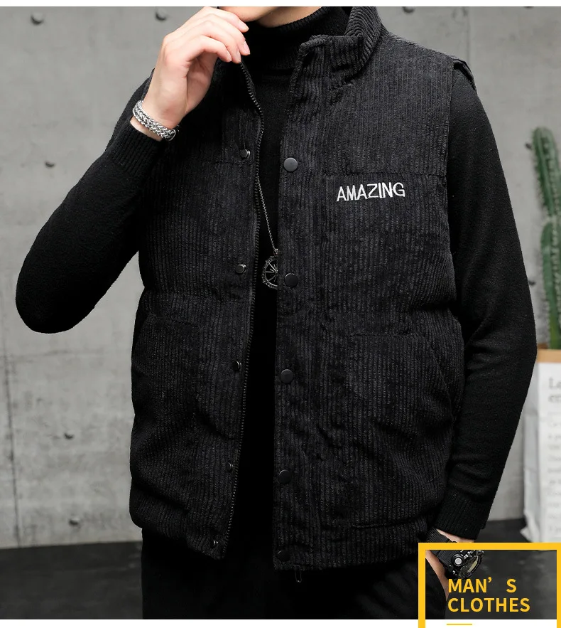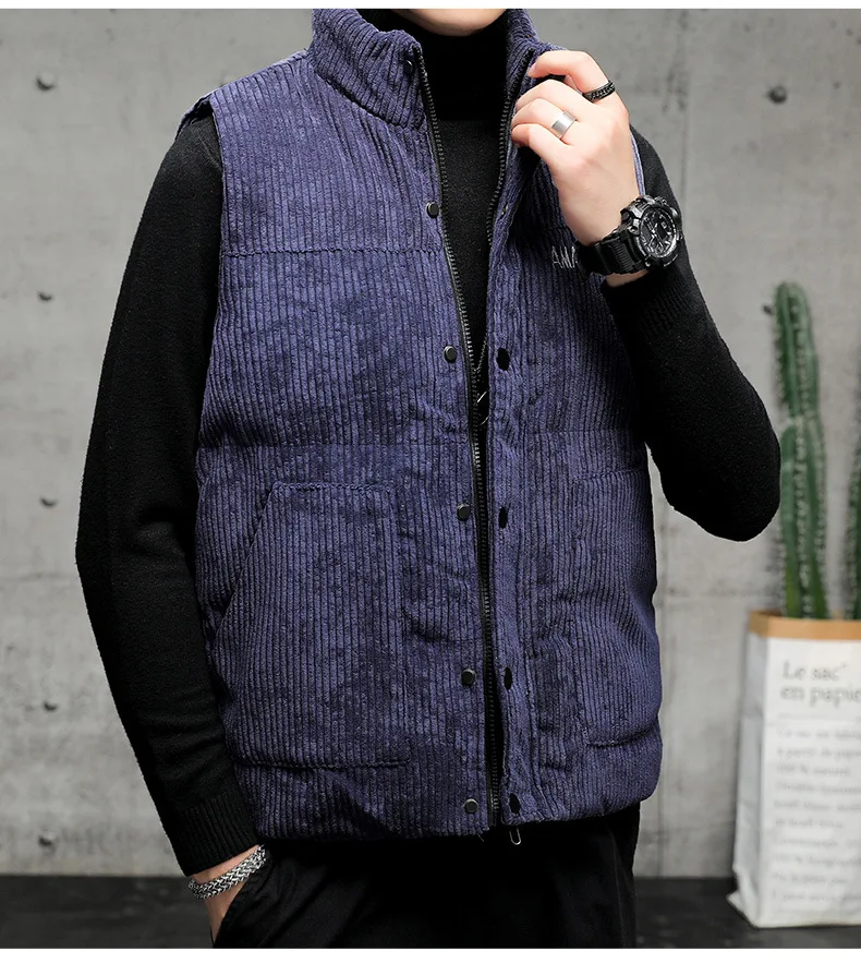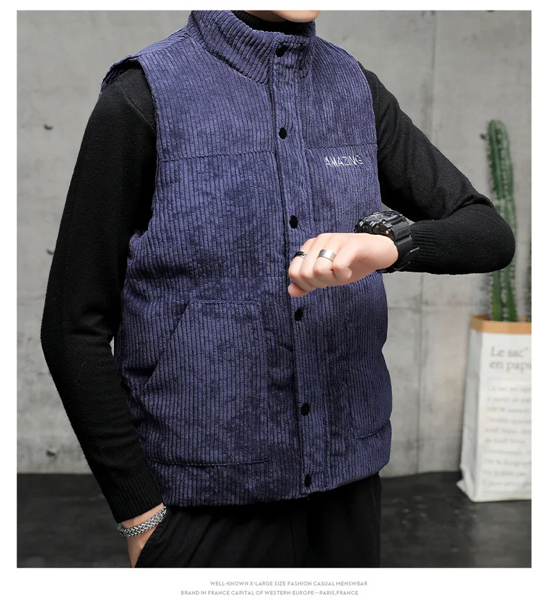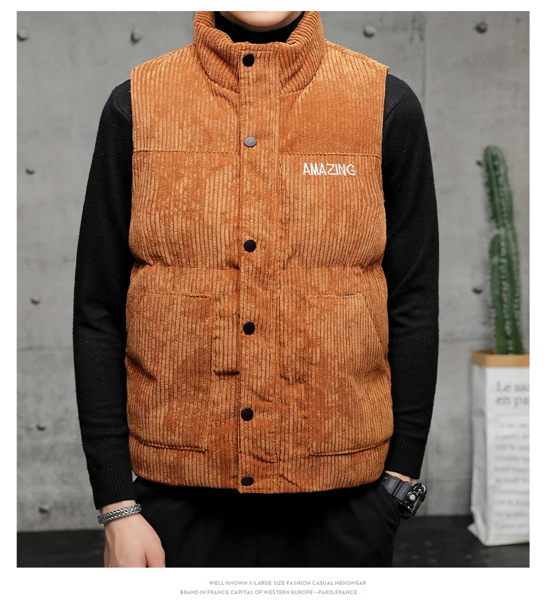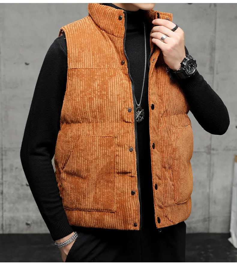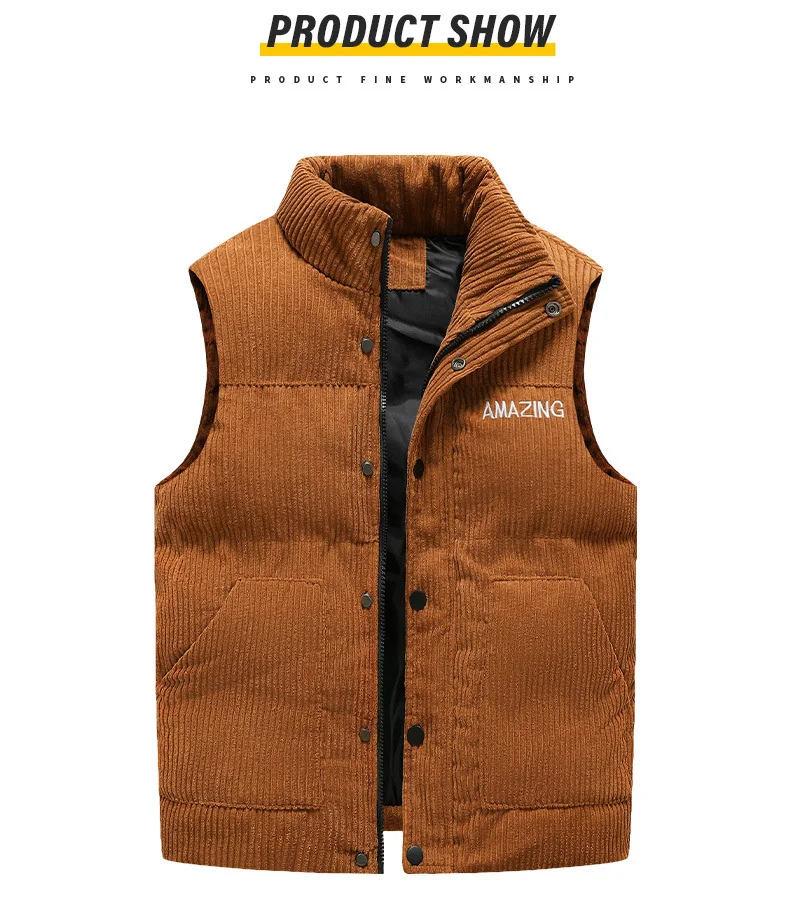 New Corduroy Vest Men Warm Coat Stand Collar Sleeveless Jacket Thicken Cotton Padded Men Thermal Waistcoat M-8XL
