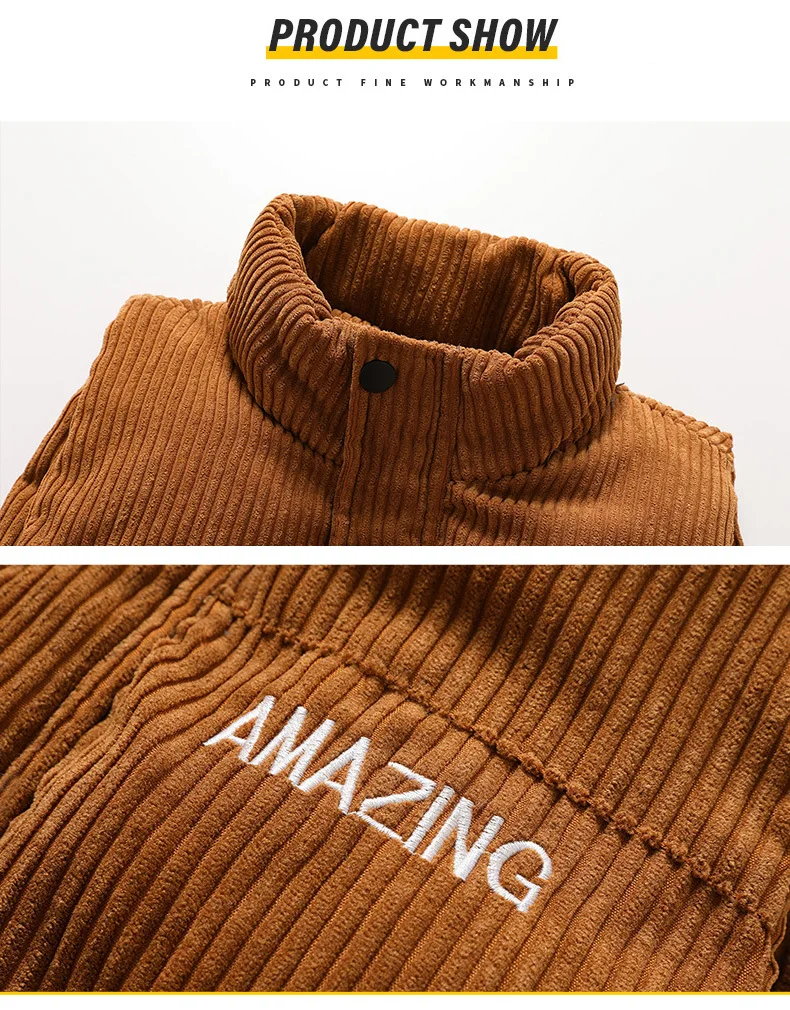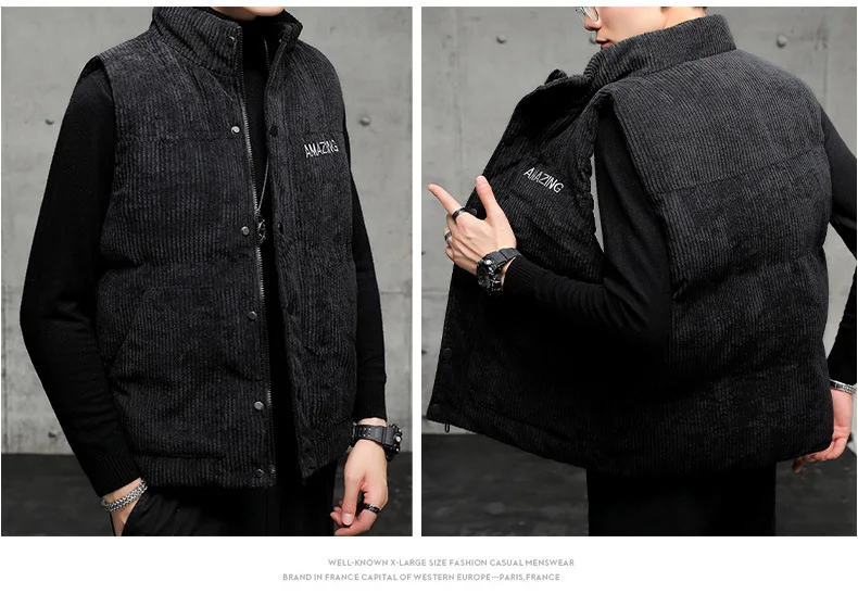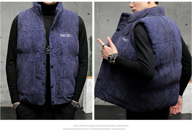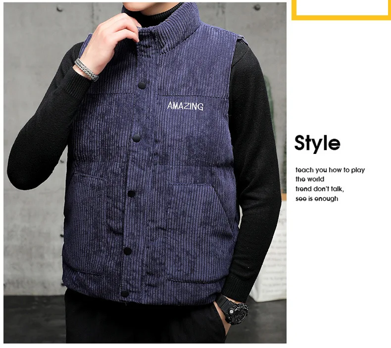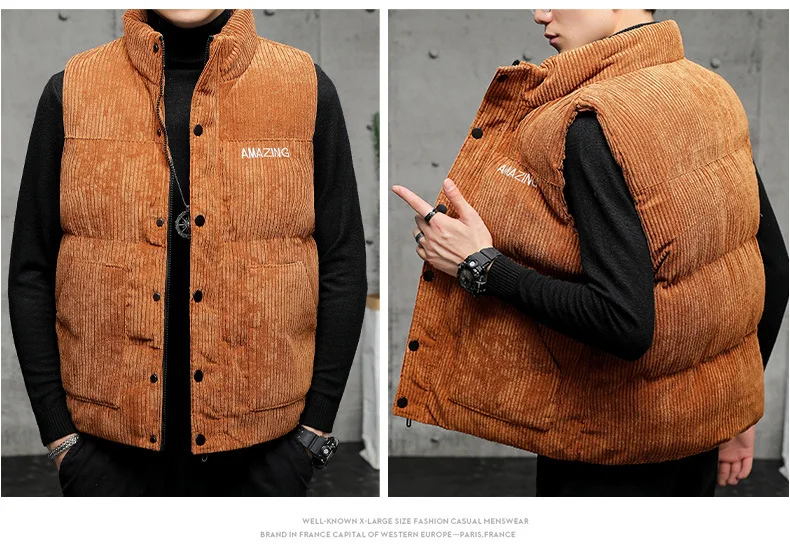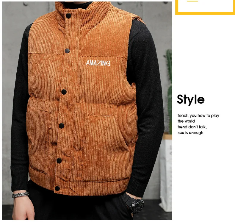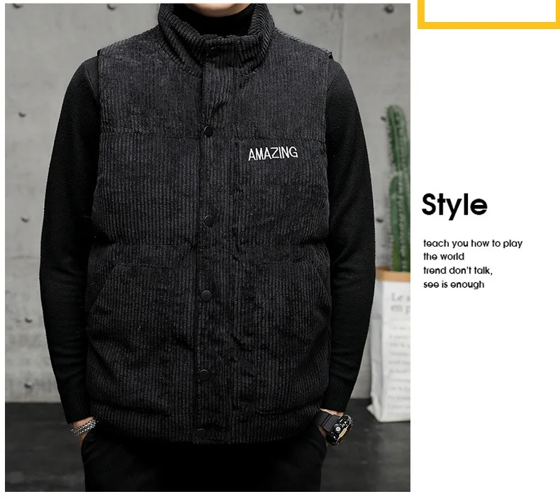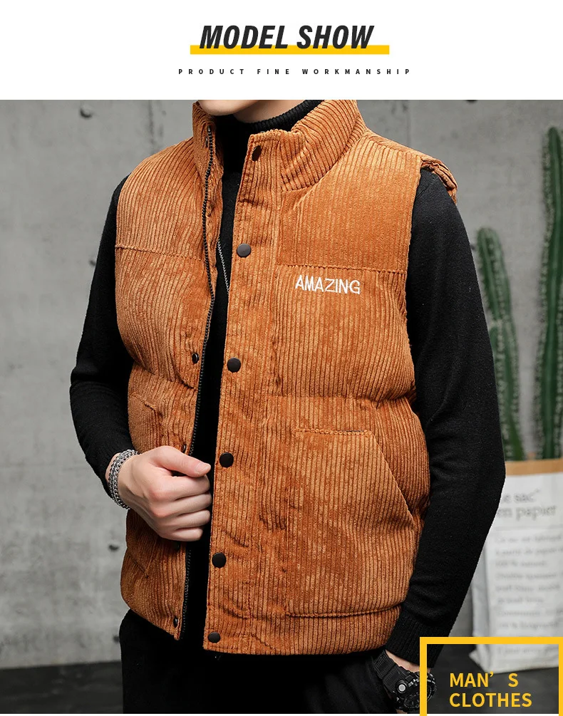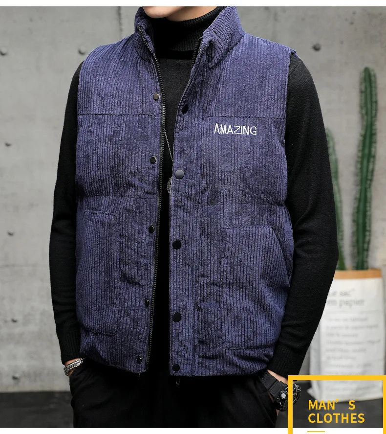 New Corduroy Vest Men Warm Coat Stand Collar Sleeveless Jacket Thicken Cotton Padded Men Thermal Waistcoat M-8XL