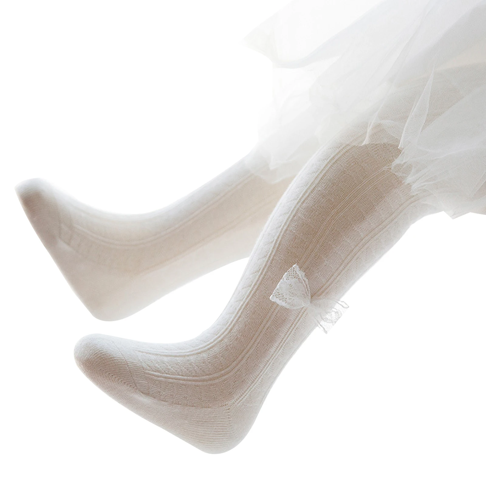 2021 Newborn Solid Color Panty-hose Fashion Baby Girl Spring Autumn Warm Elastic Waistband Mesh Bow Tights