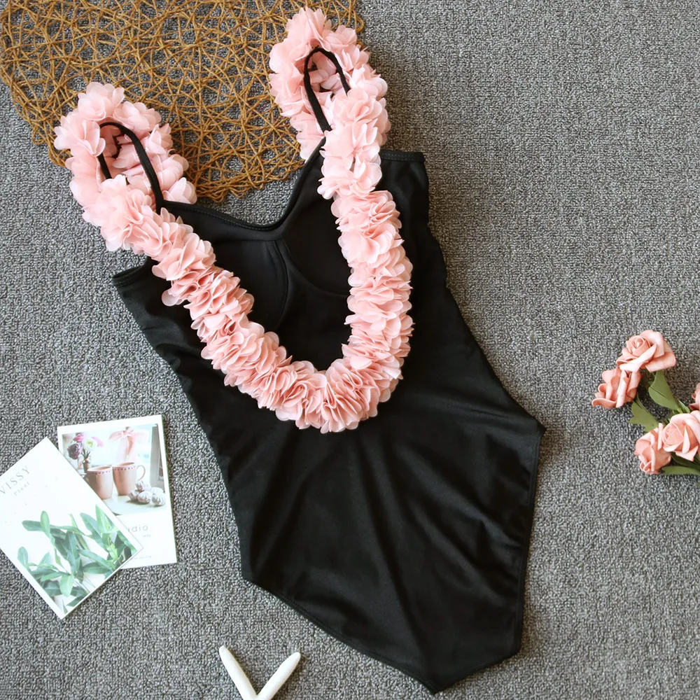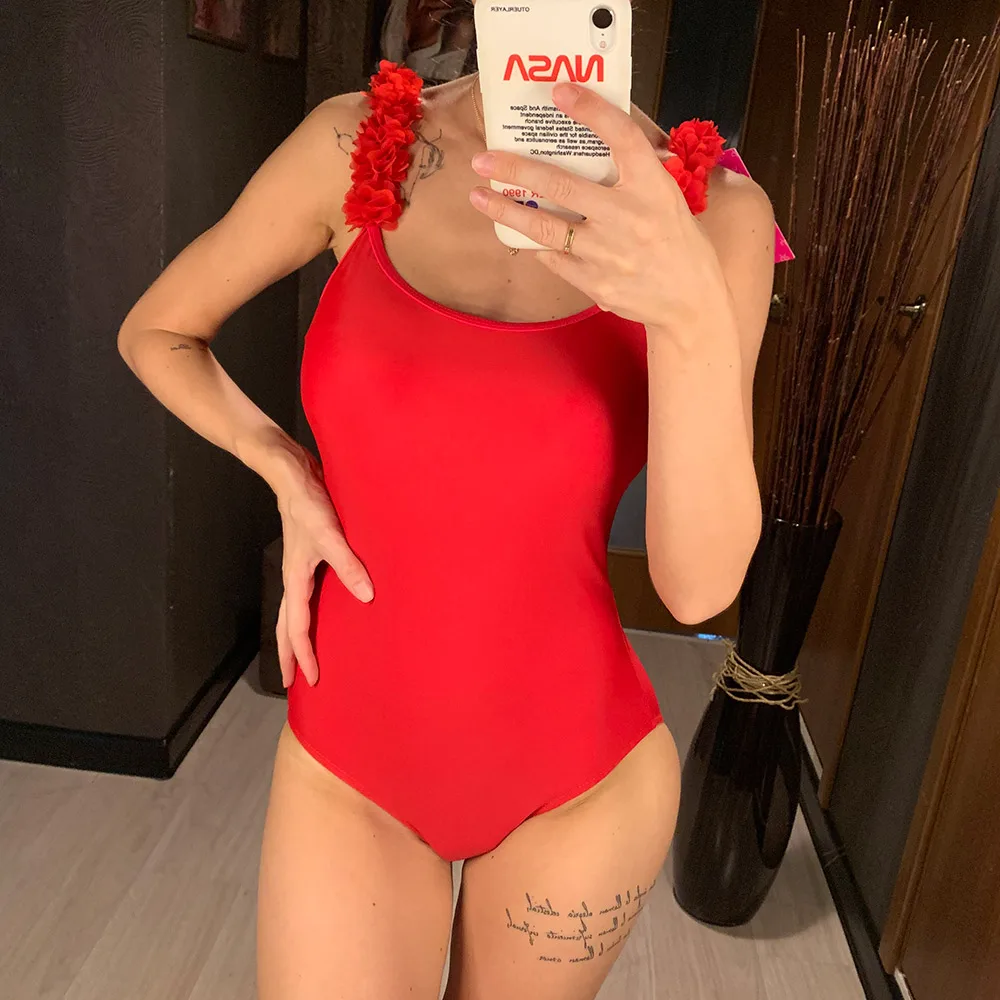 2021 Sexy One Piece Swimsuit Women 3D Flower Bodysuit Backless Monokini Swimwear Female Bathing Suit Solid Beachwear For Girls