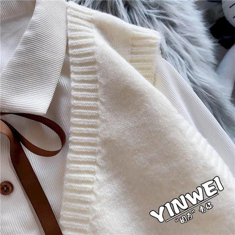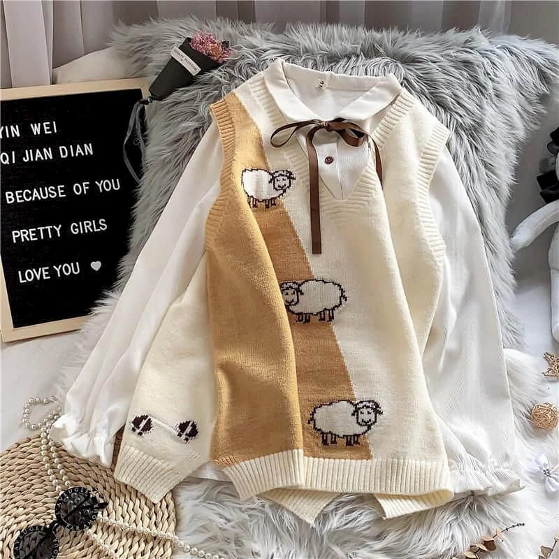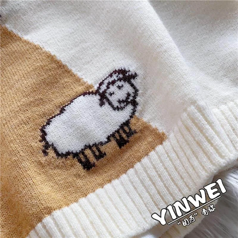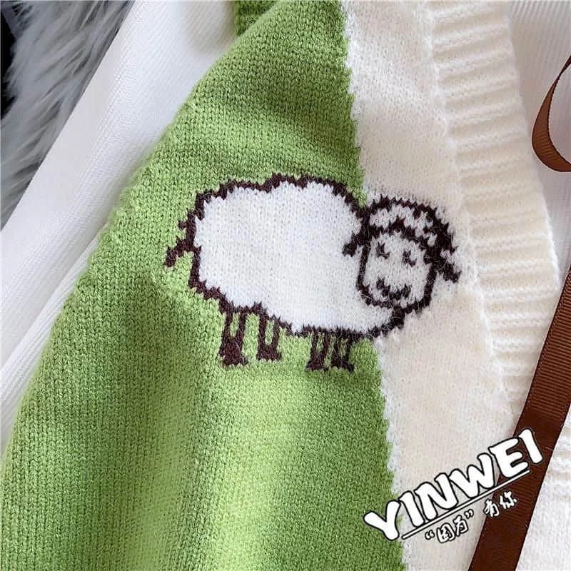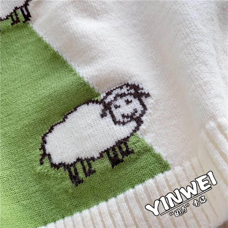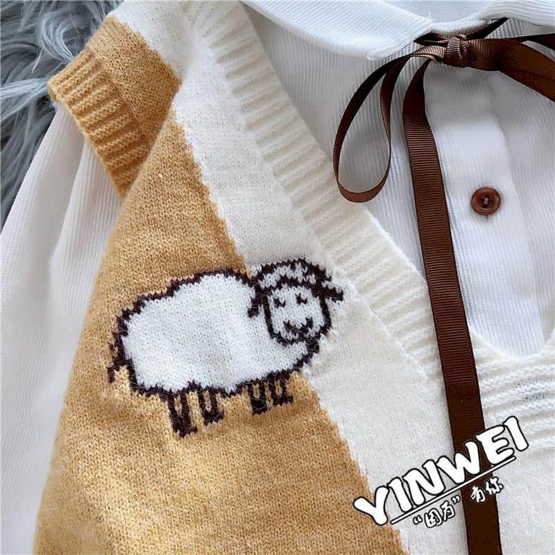 2021 Spring Autumn Sweater Knitted Vest Korean Top for Women Clothing Oversize Vintage Sleeveless Kawaii Harajuku V-Neck Sheep