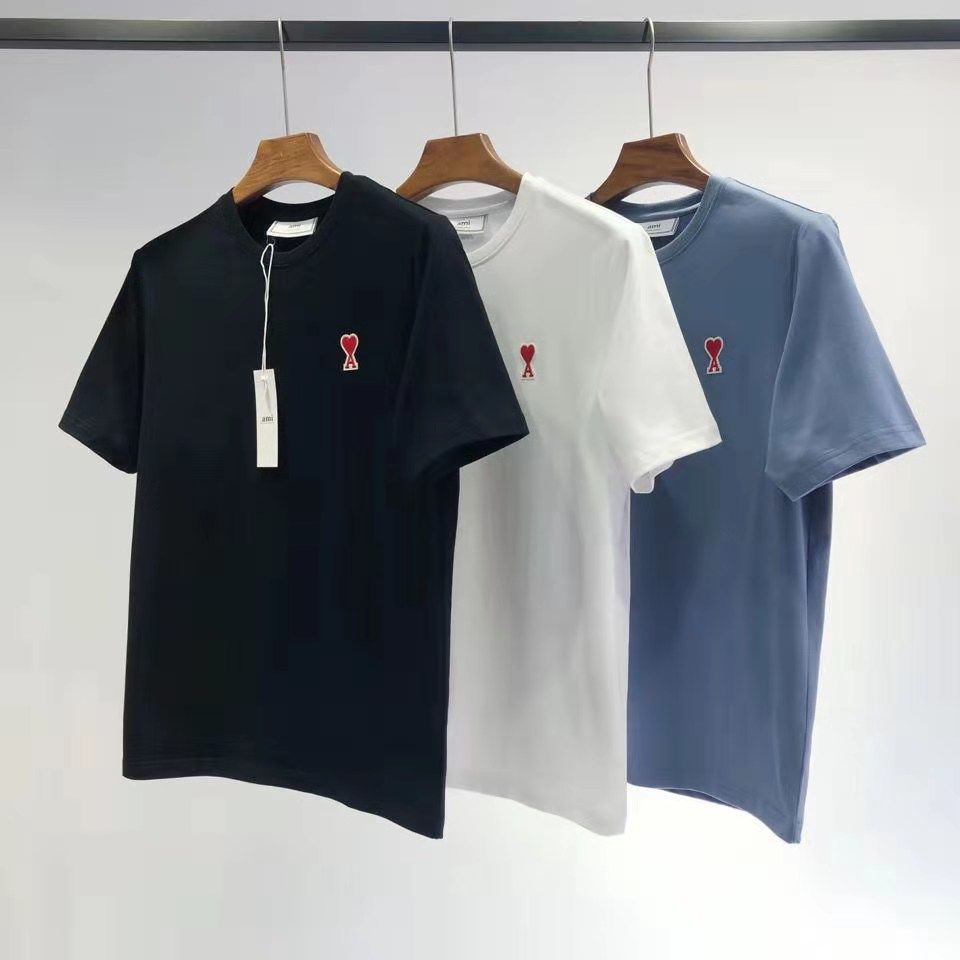 2022 AMI Summer New 100% Cotton Korea Fashion T Shirt Men Causal O-neck Basic T-shirt Male High Quality Classical Tops