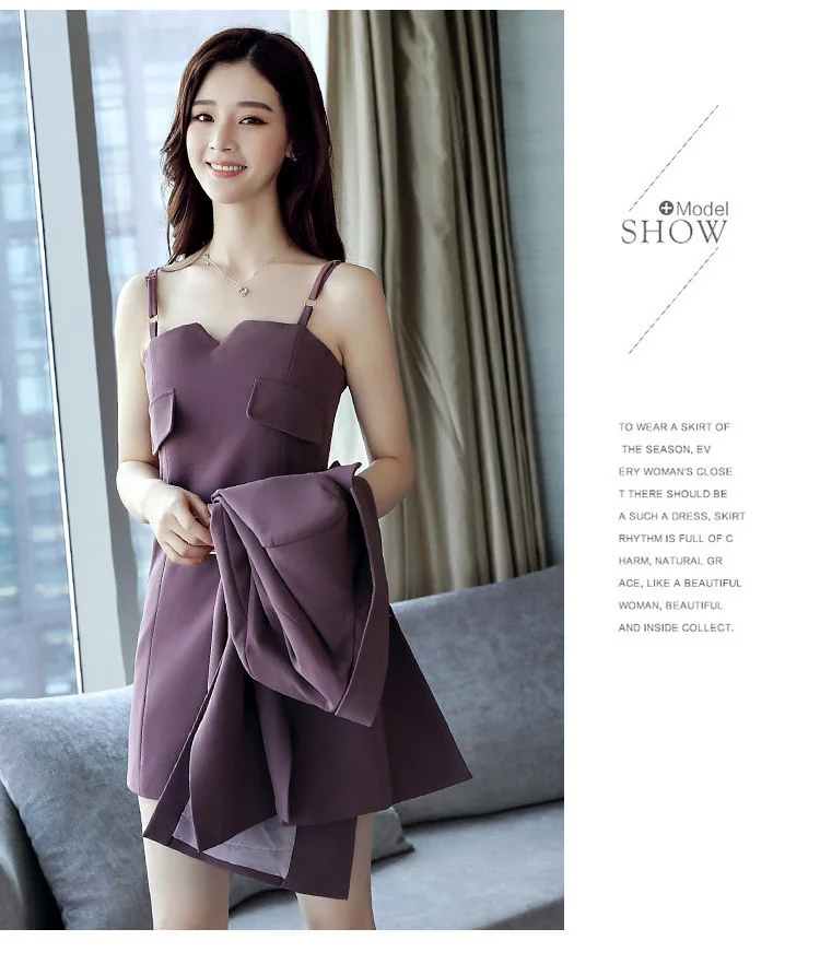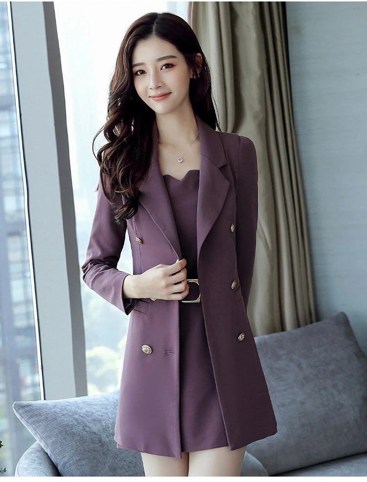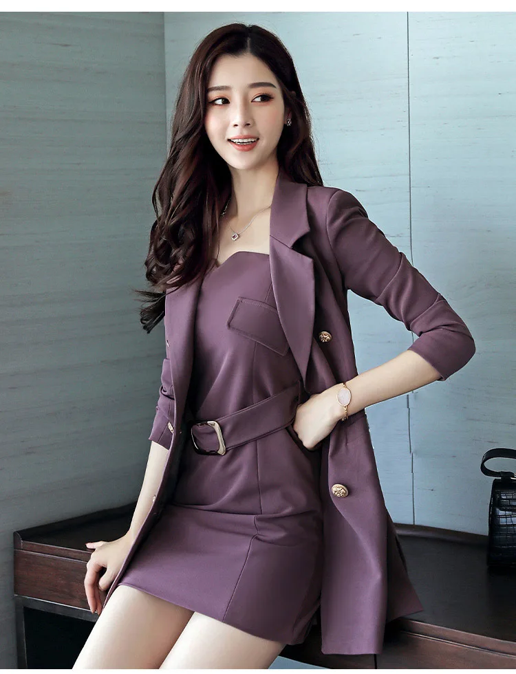 2022 Autumn Business Suit Elegant Office Dress Lady Work 2 Pieces Set Long Sleeve Blazer and Sleeveless Dress Suit Set