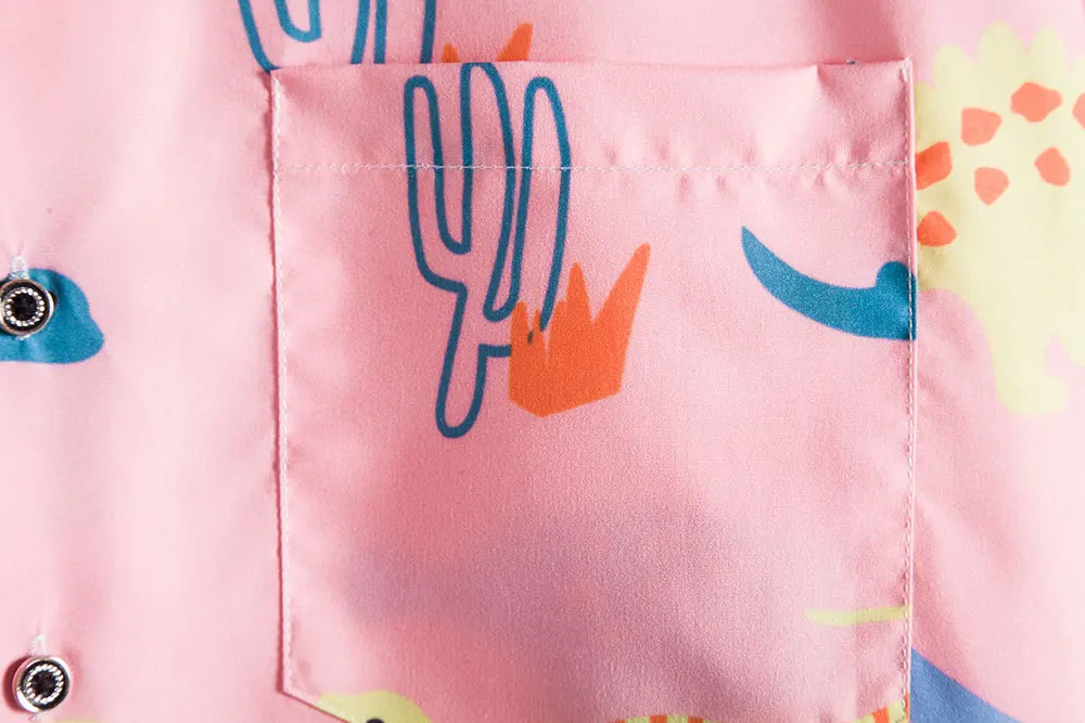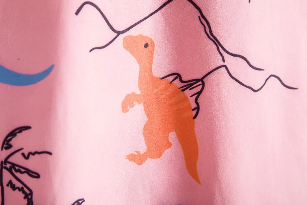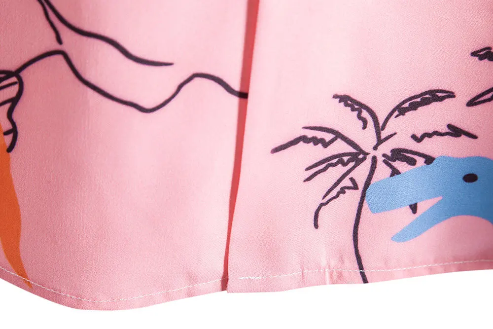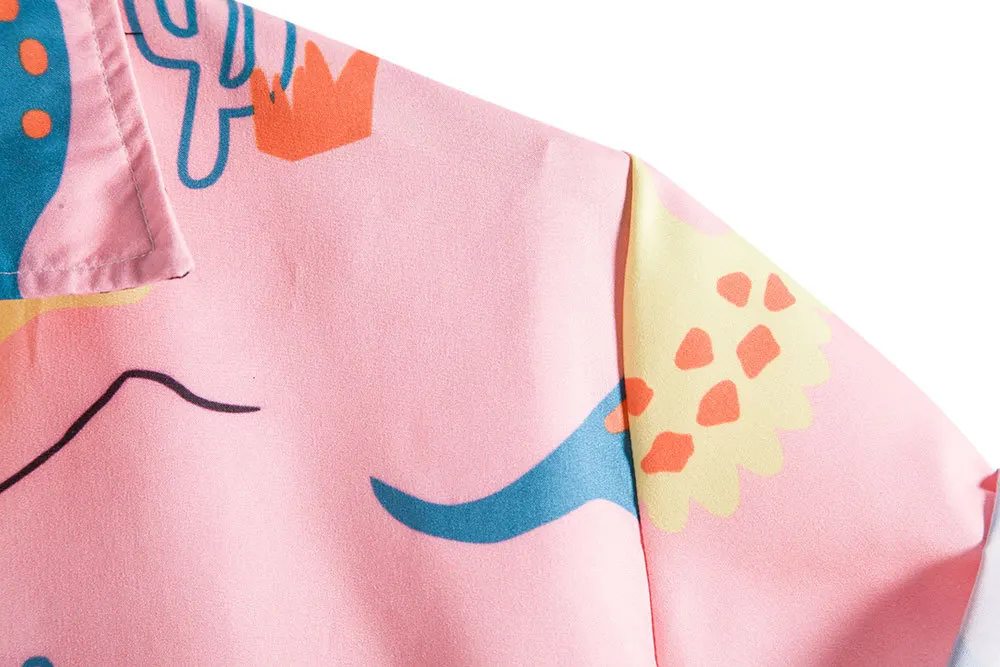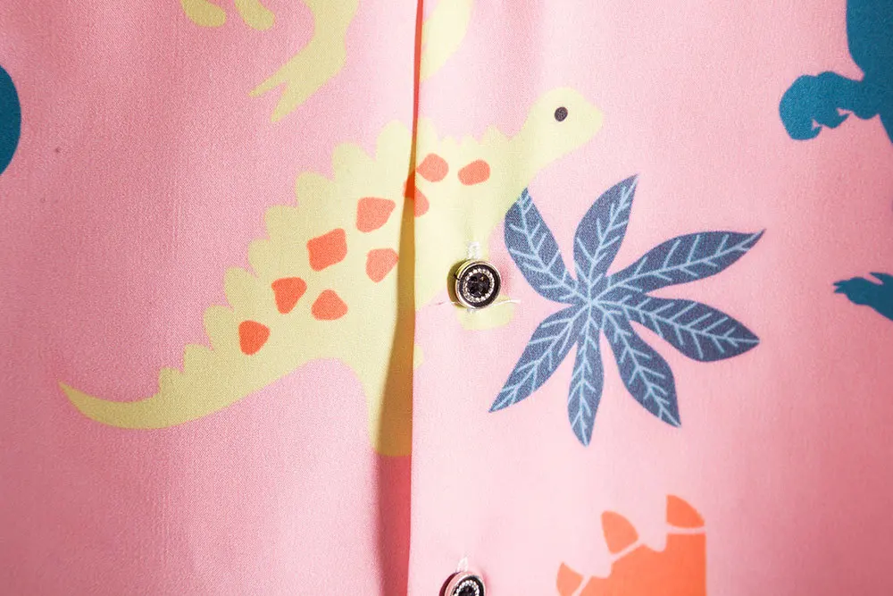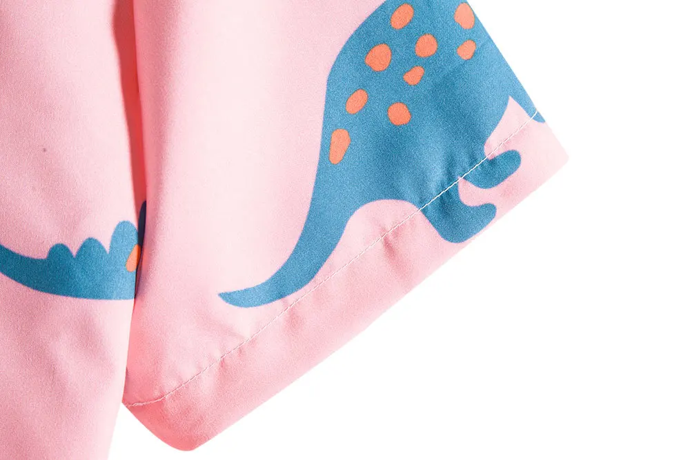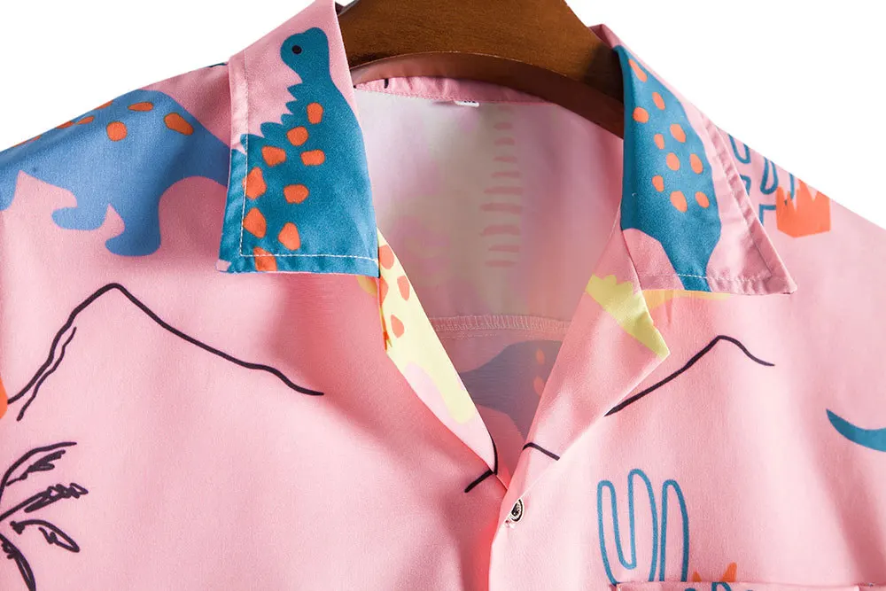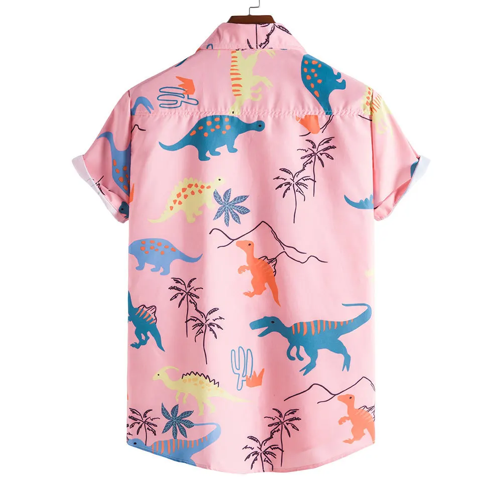 Cartoon Dinosaur 3D Printing Shirt Pink Lapel Button Short Sleeve Hawaiian Casual Breathable Oversized Korean Shirt