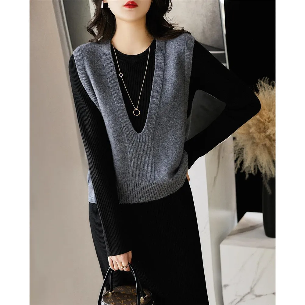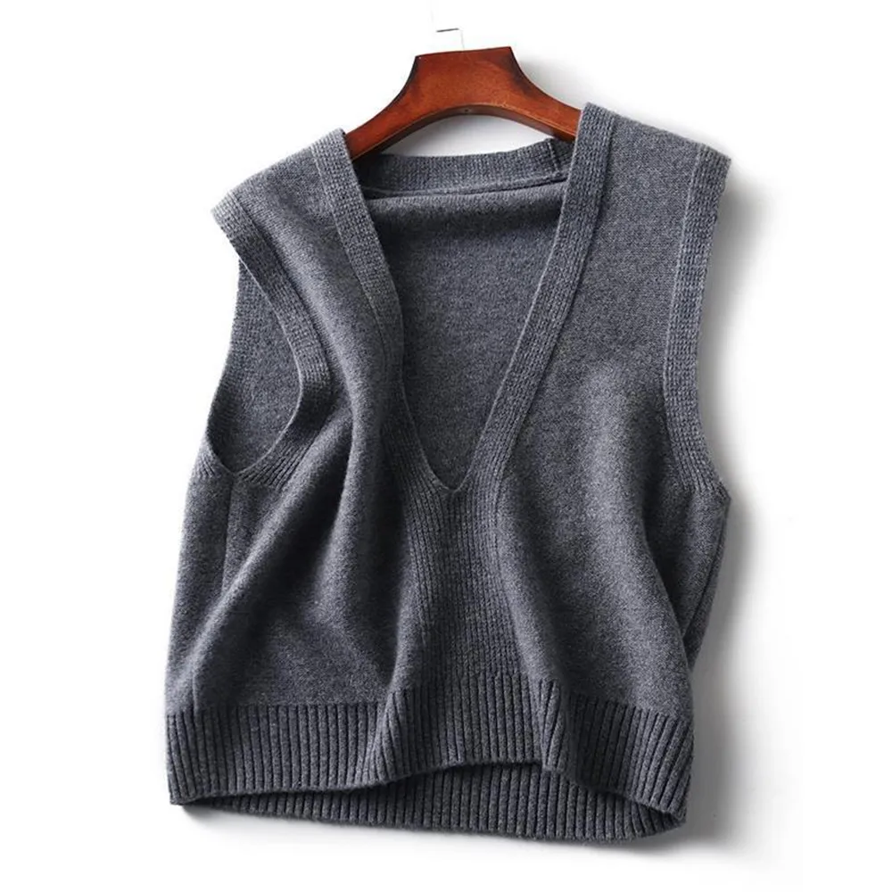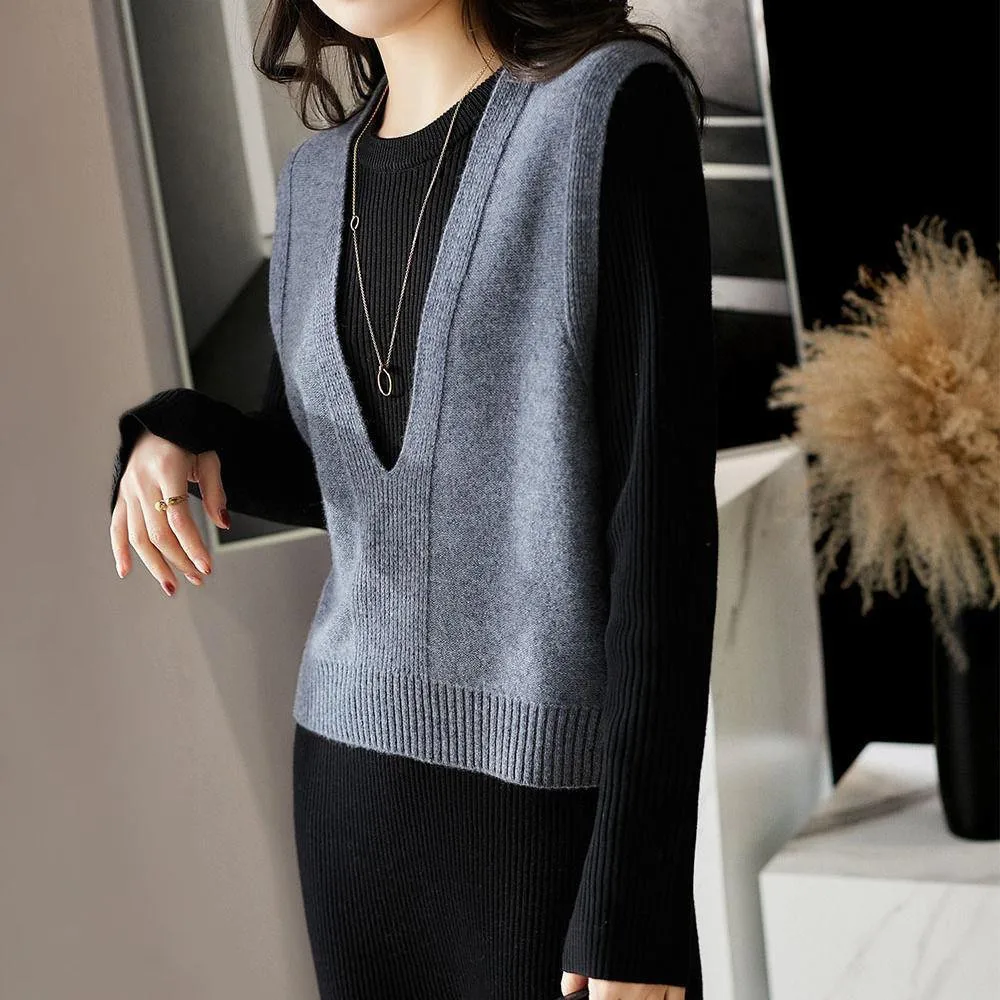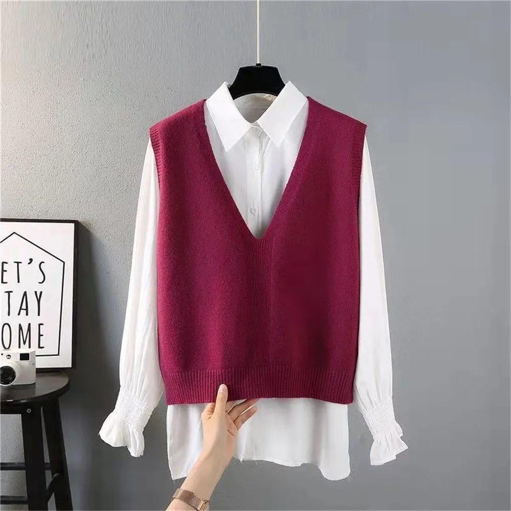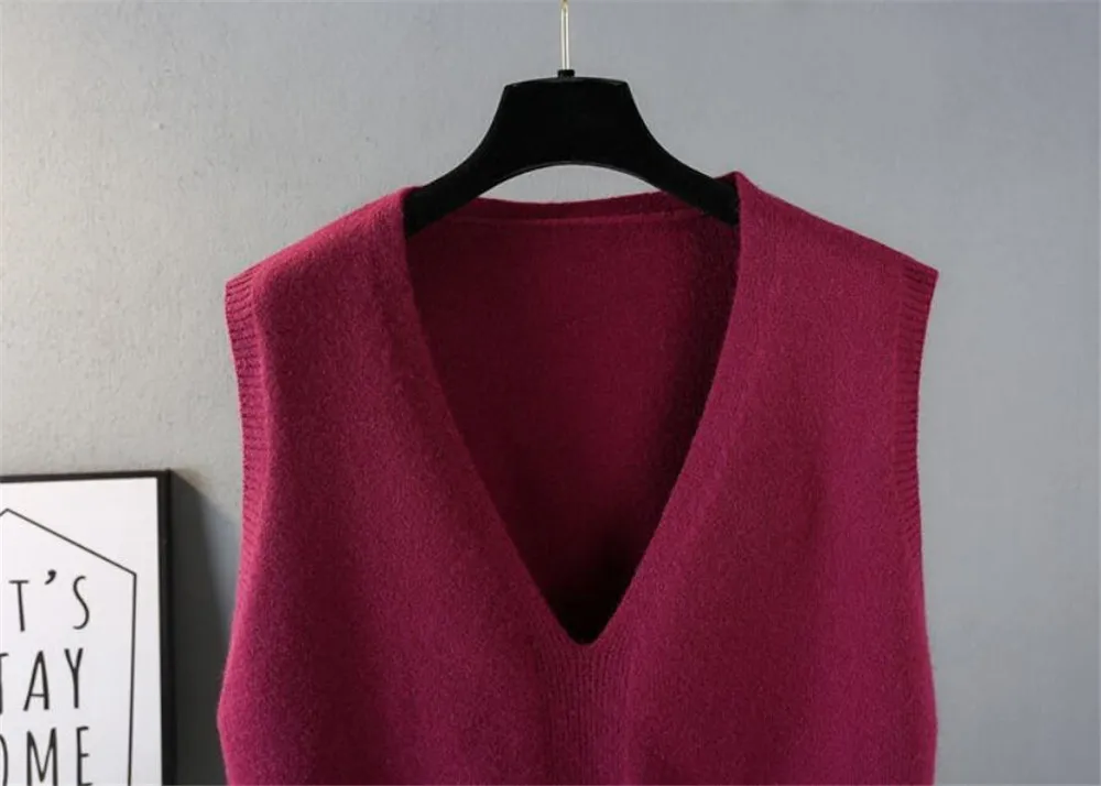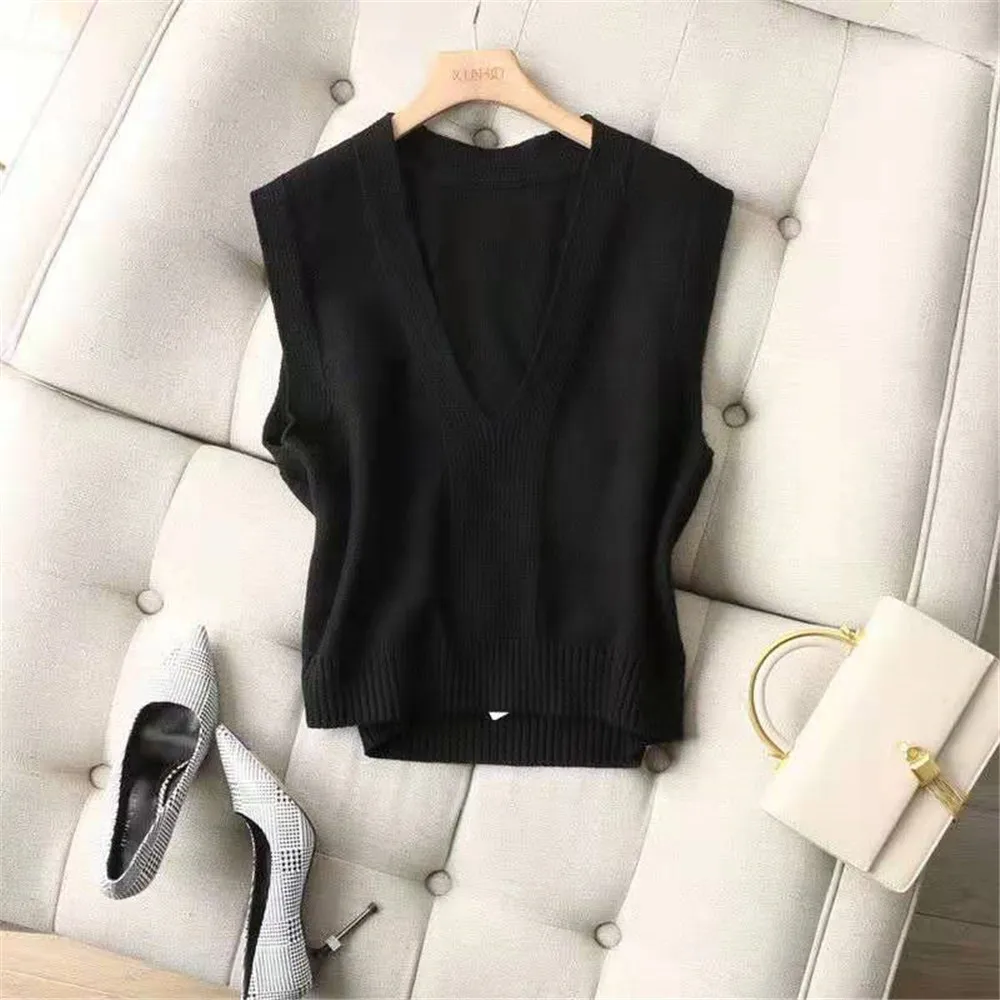 Korean Style Loose Fashion Solid Autumn Simple Elegant Basic Vintage All-match Casual V-neck Female Sweater Vests Womens
