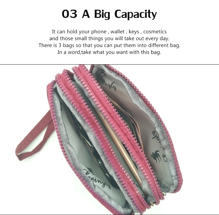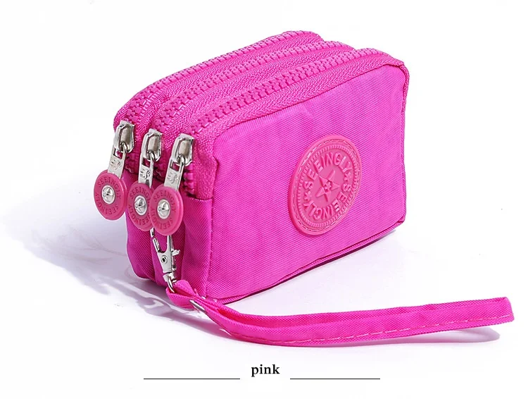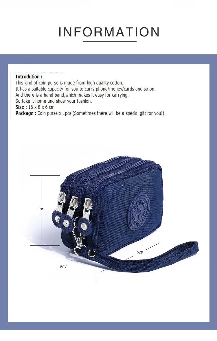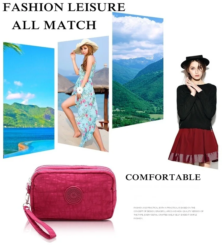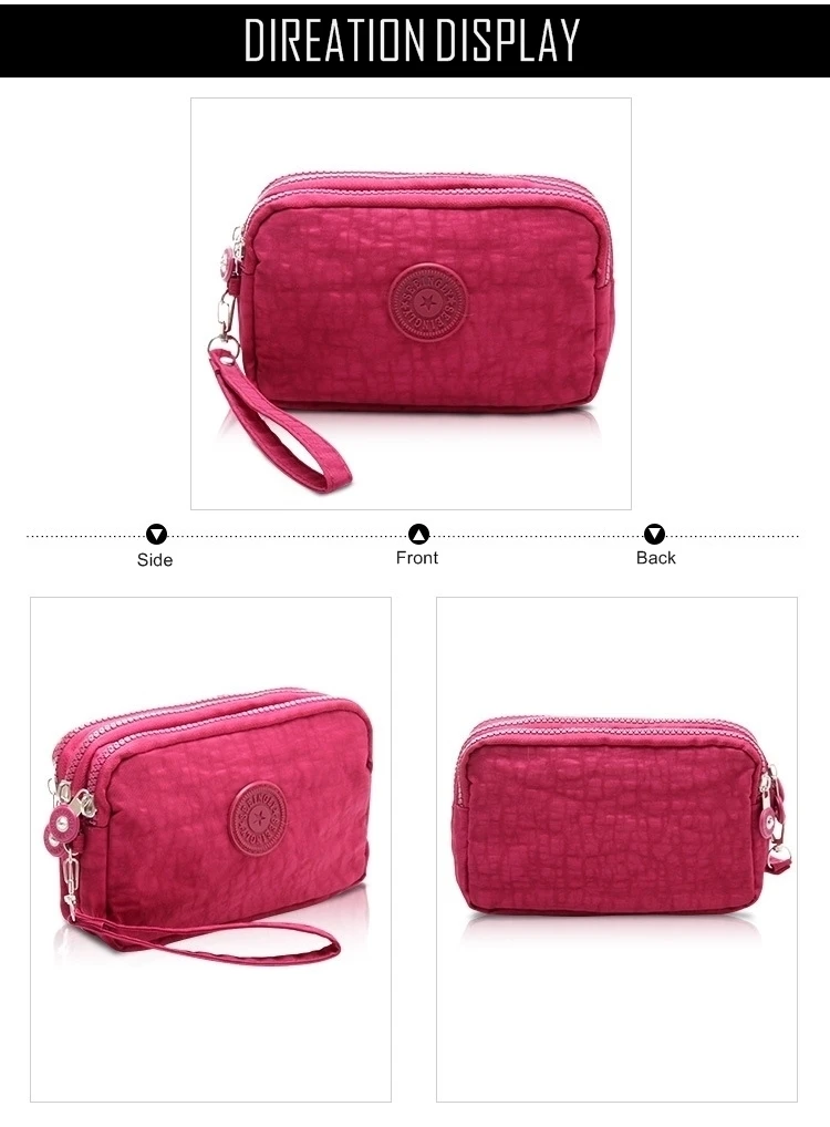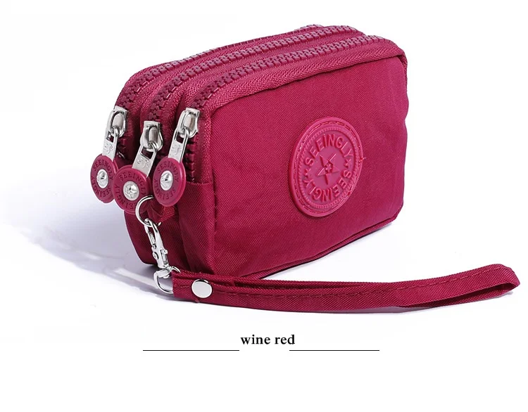 2022 New Coin Purse Women Small Wallet Washer Wrinkle Fabric Phone Purse Three Zippers Portable Make Up Bag 8 colors