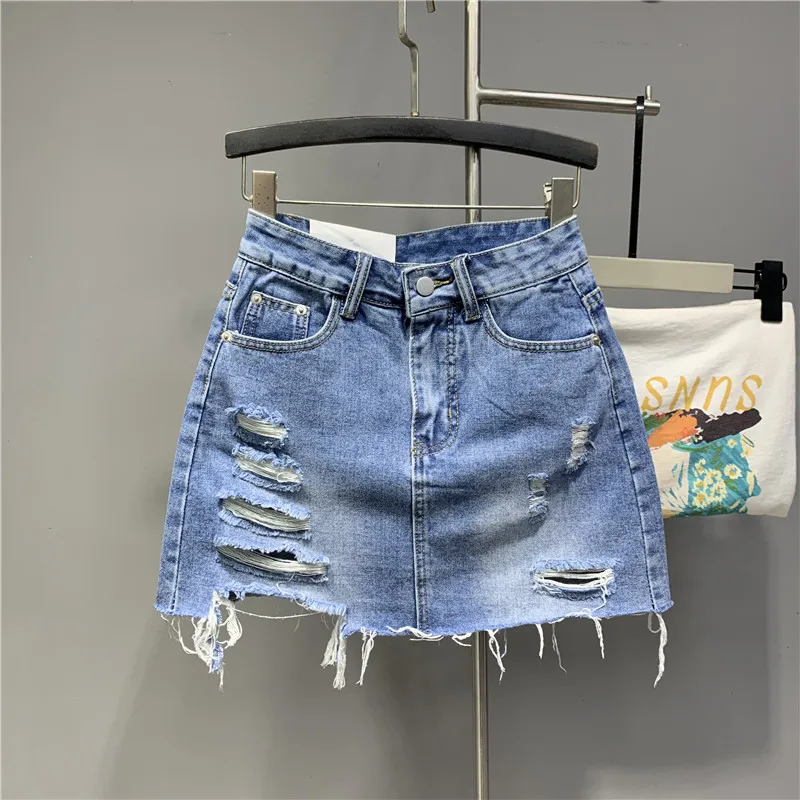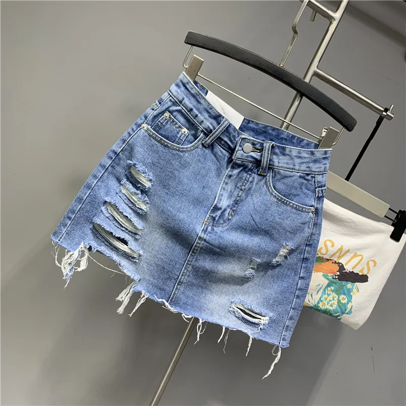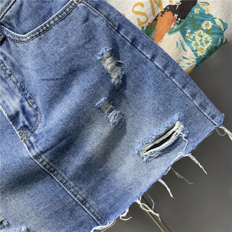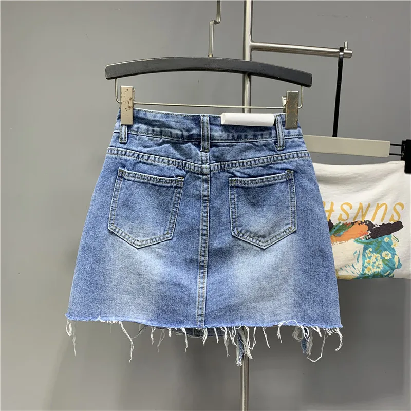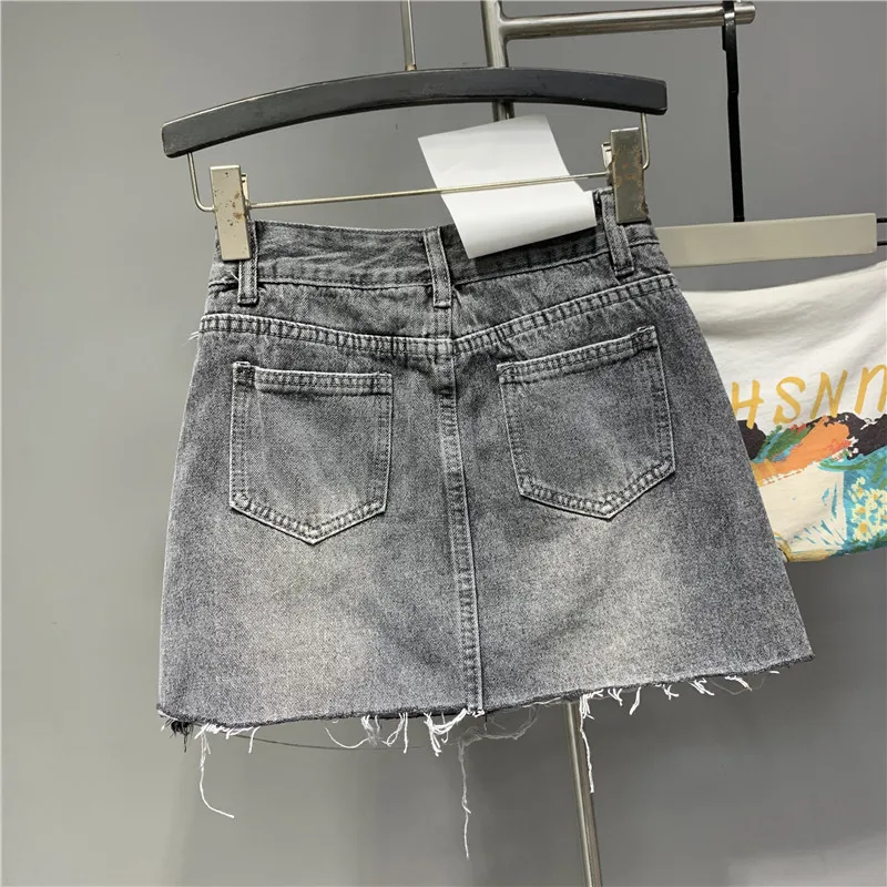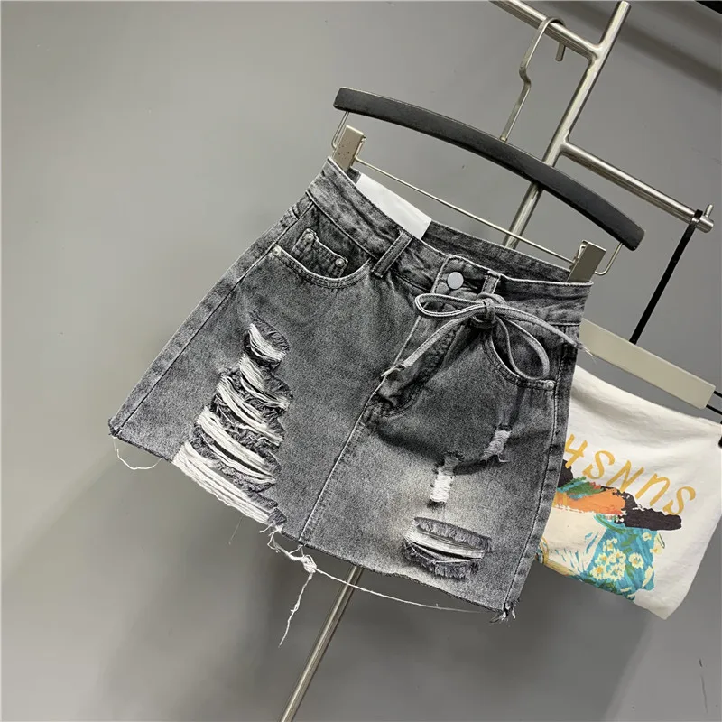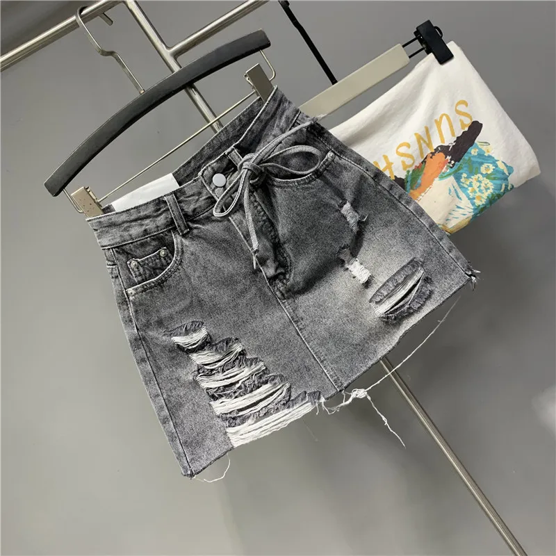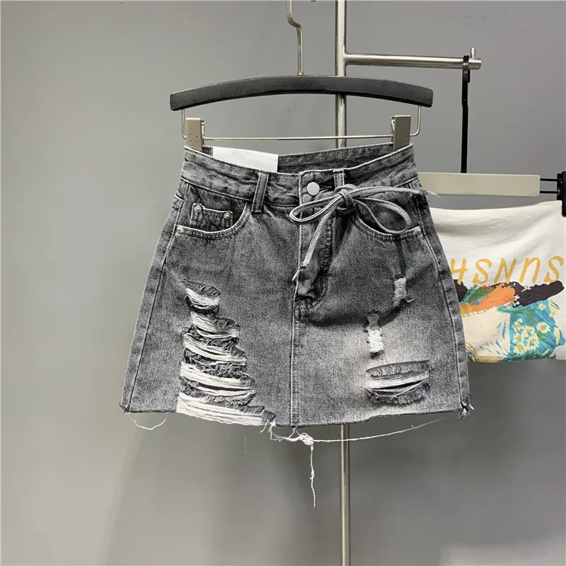 2022 Personalized Worn Bow Black Gray Washed Denim Skirt for Women Summer Clothes New Anti-Exposure Hip Jupe