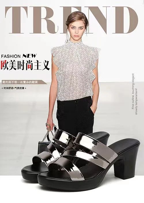 New High-heeled Waterproof Platform Women Sandals and Slippers Thick-heeled Bright Leather Solid Color Casual Shoes