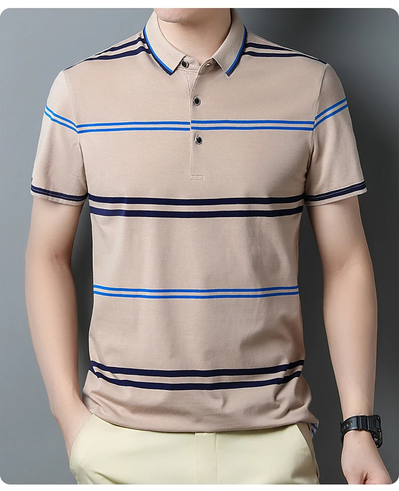 New Summer Striped Polo Shirts For Men Short Sleeve Cotton T Shirt Regular Fit Designer Casual Tops Fashions Men Clothes